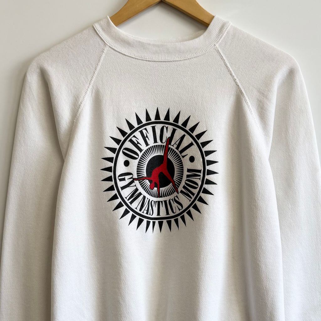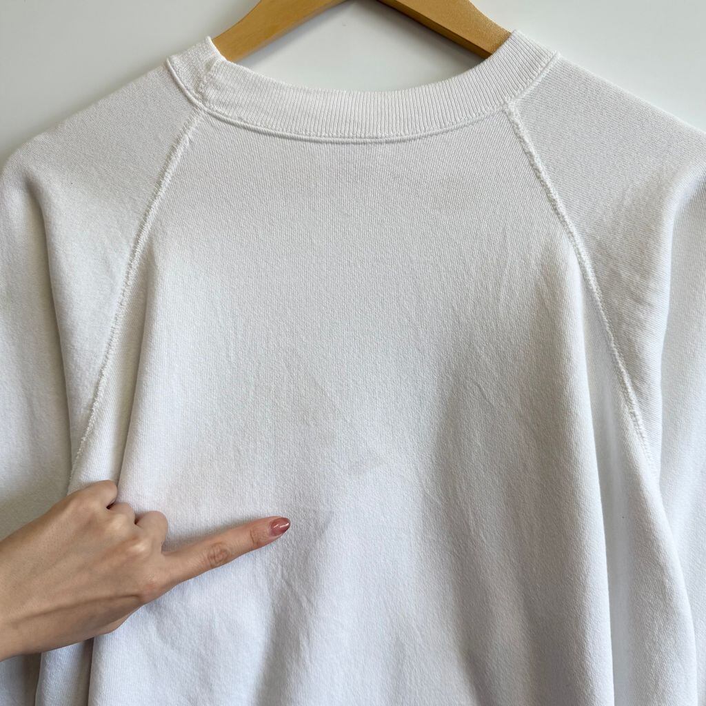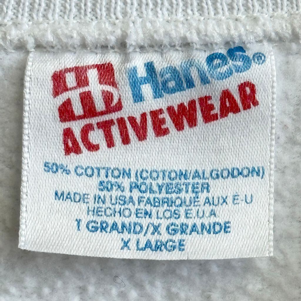 USA製 Hanes ヘインズ フロントプリント 体操 ラグランスウェット トレーナー 白 XLサイズ No.H070