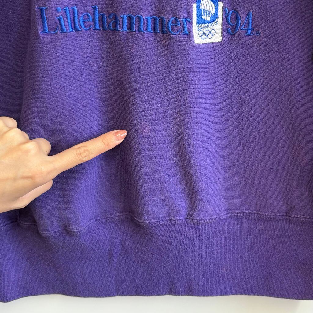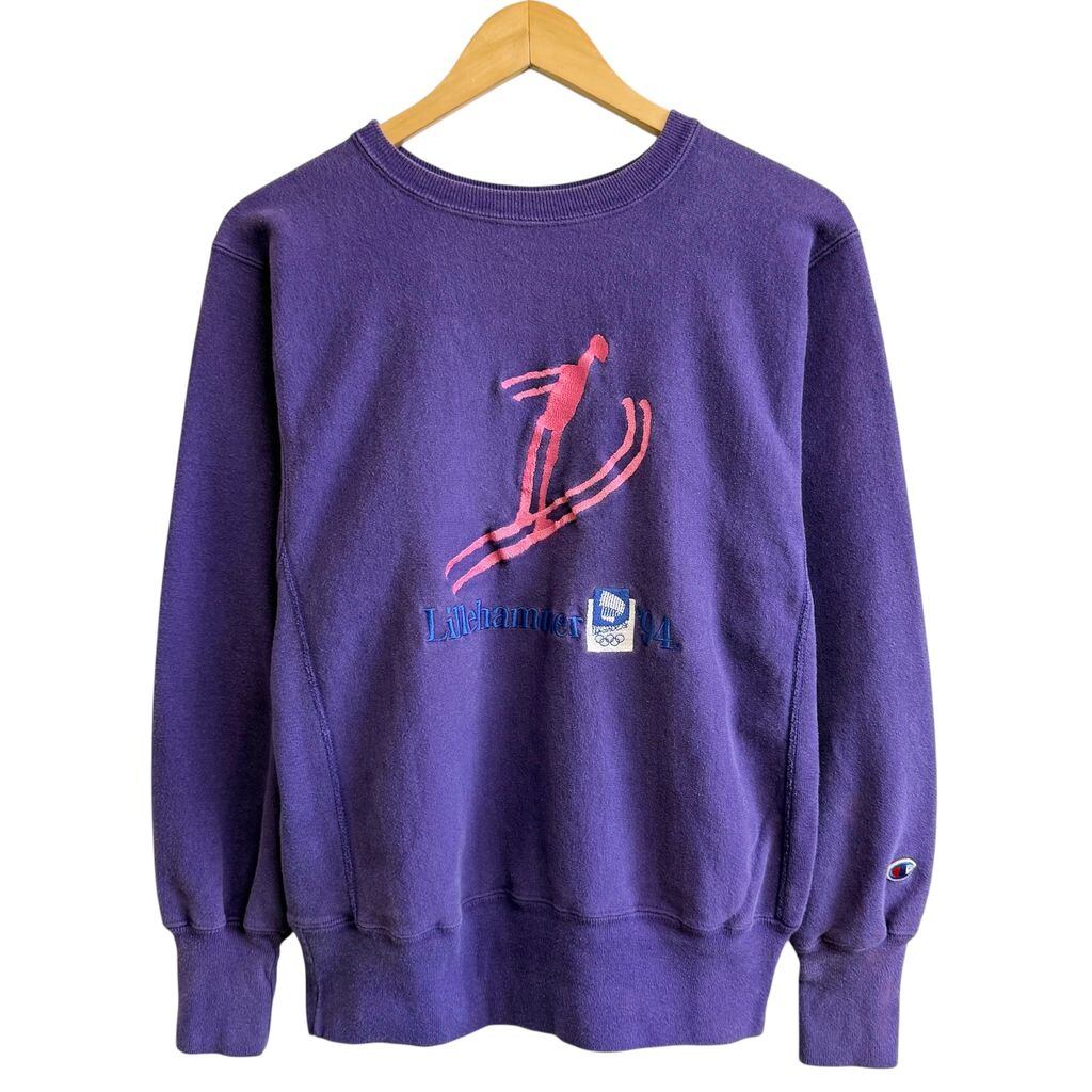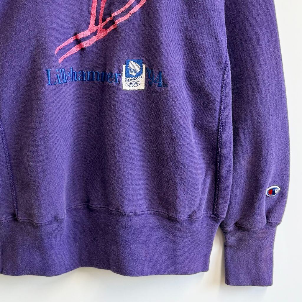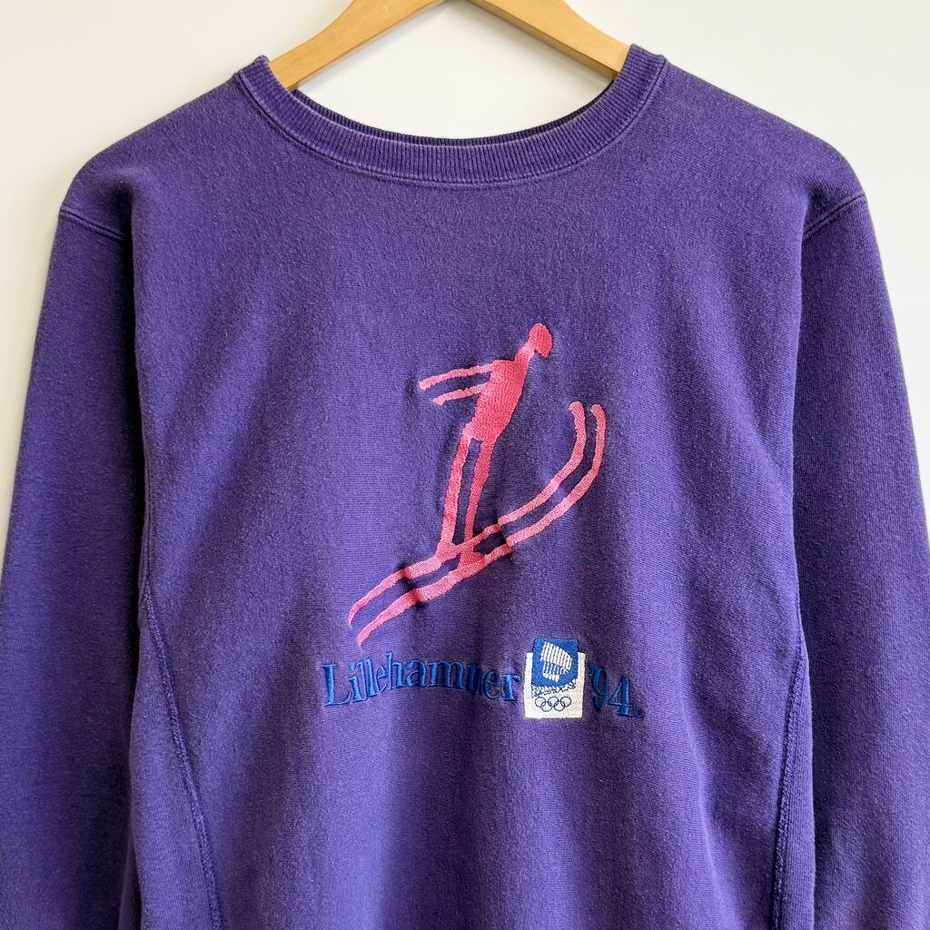 90's USA製 Champion チャンピオン 冬季五輪 リレハンメル オリンピック トレーナー スウェット 紫 パープル Mサイズ No.H077