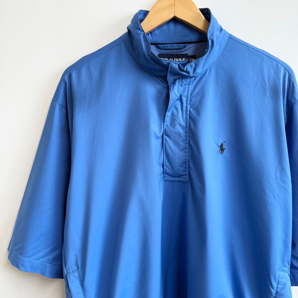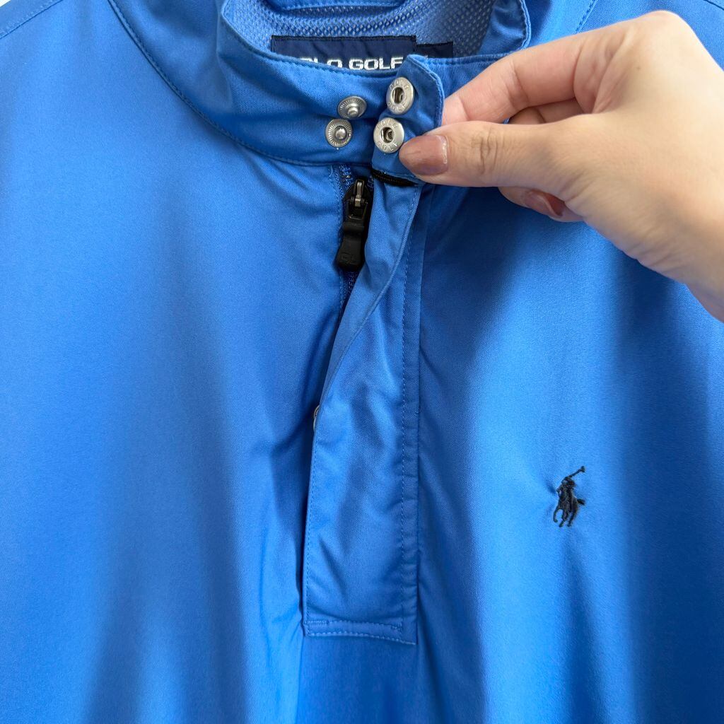 POLO GOLF ポロゴルフ ポリシャツ プルオーバー ハーフジップ ポケット付き ワンポイントロゴ 刺繍 半袖シャツ 青 ブルー Mサイズ No.H093