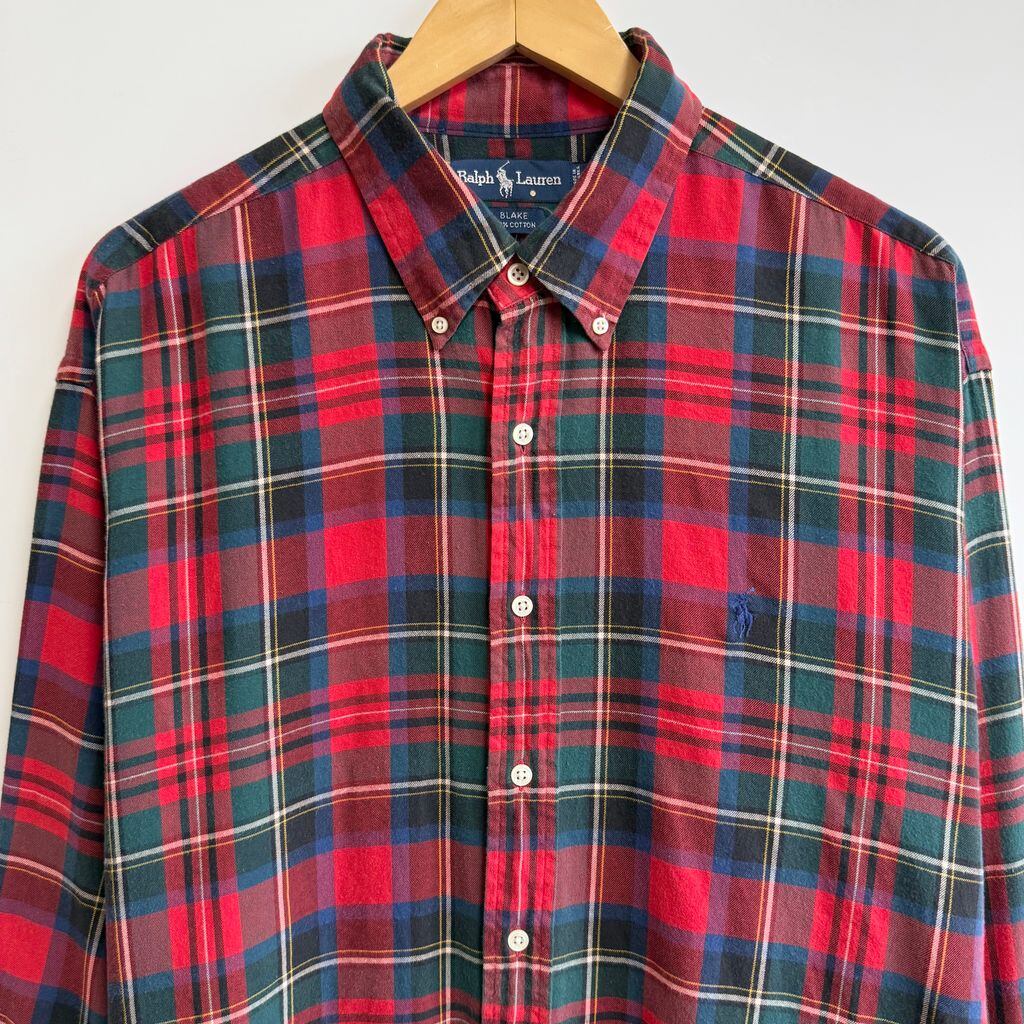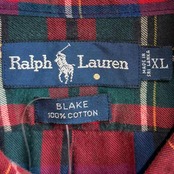 Ralph Lauren ラルフローレン BLAKE ボタンダウンシャツ コットンシャツ チェック柄 長袖シャツ ワンポイントロゴ 刺繍 赤×緑×青×多色 XLサイズ No.H196