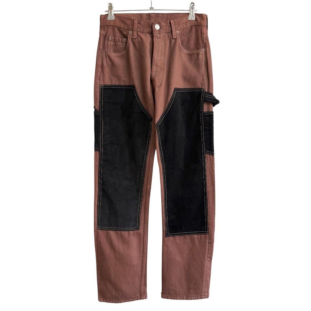 Levi's リーバイス 501 ボタンフライ 切り替えデザイン デニム×コーデュロイ カーゴポケット 赤茶×黒 W29×32 No.H206