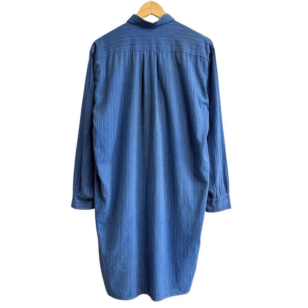 〜40's グランパシャツ プルオーバー ハーフボタン 長袖シャツ ストライプ 青×多色 No.H221