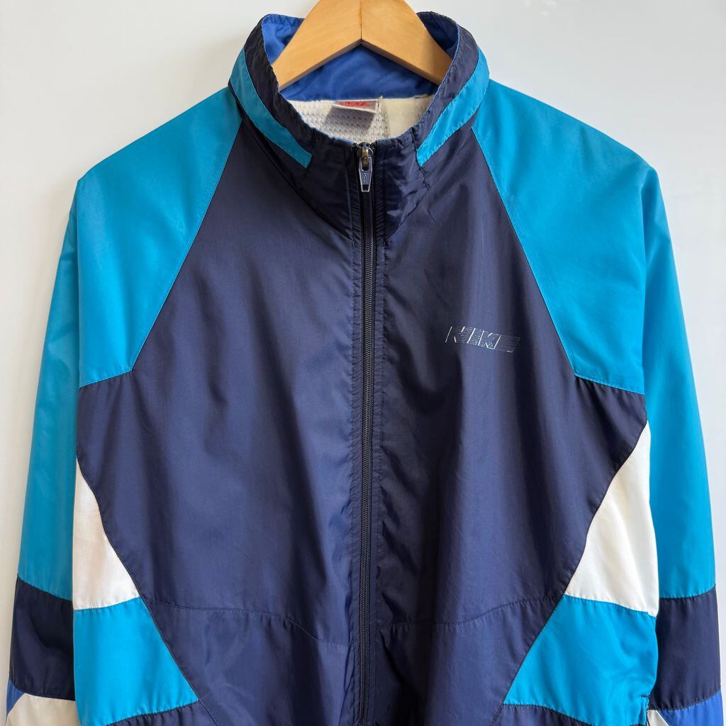 NIKE ナイキ ウィンドブレーカー 裏地メッシュ ナイロンジャケット フルジップ ポケット付き 紺×白×水色 Mサイズ No.H270