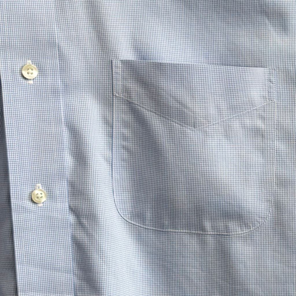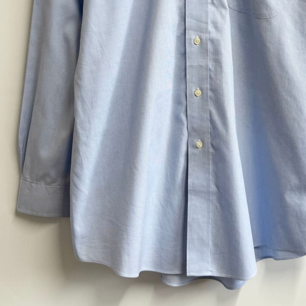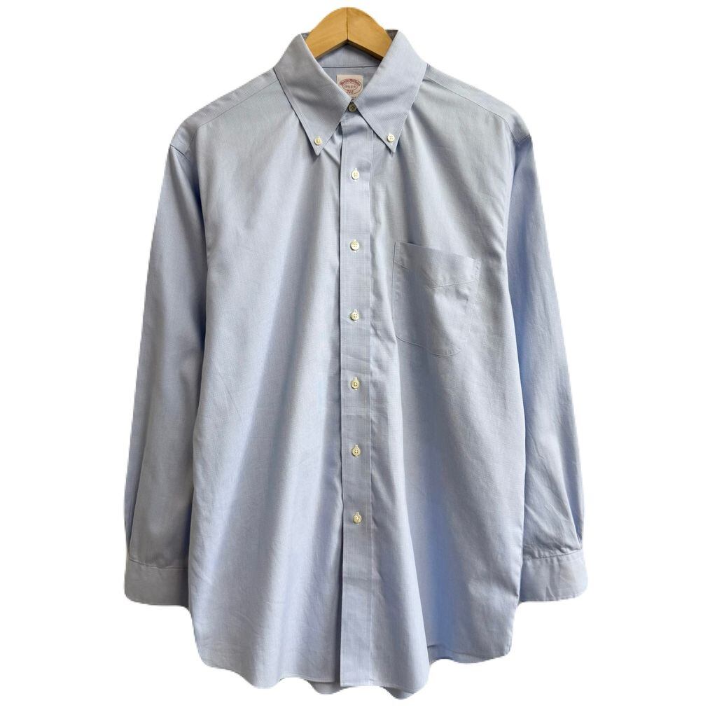 Brooks Brothers ブルックスブラザーズ ボタンダウンシャツ 千鳥柄 コットンシャツ ポケット付き 長袖シャツ 白×水色 No.H289