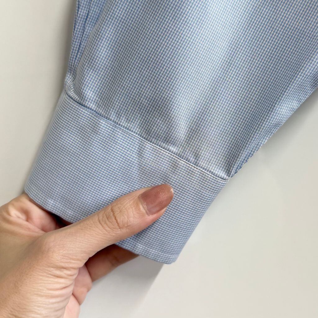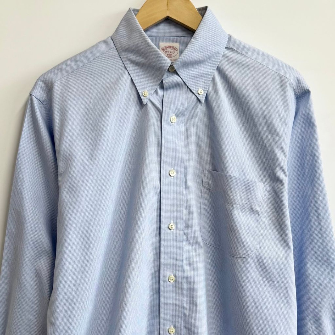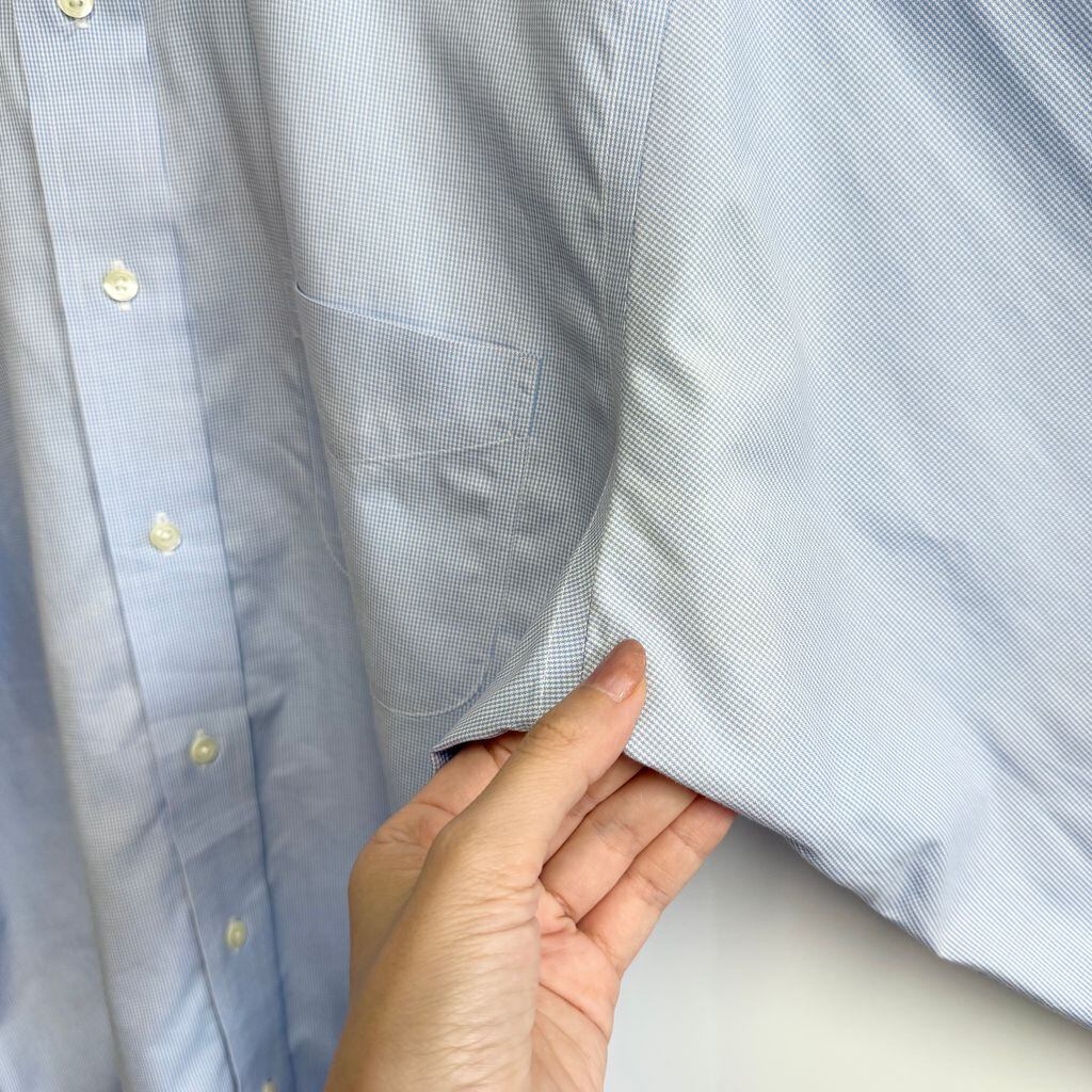 Brooks Brothers ブルックスブラザーズ ボタンダウンシャツ 千鳥柄 コットンシャツ ポケット付き 長袖シャツ 白×水色 No.H289