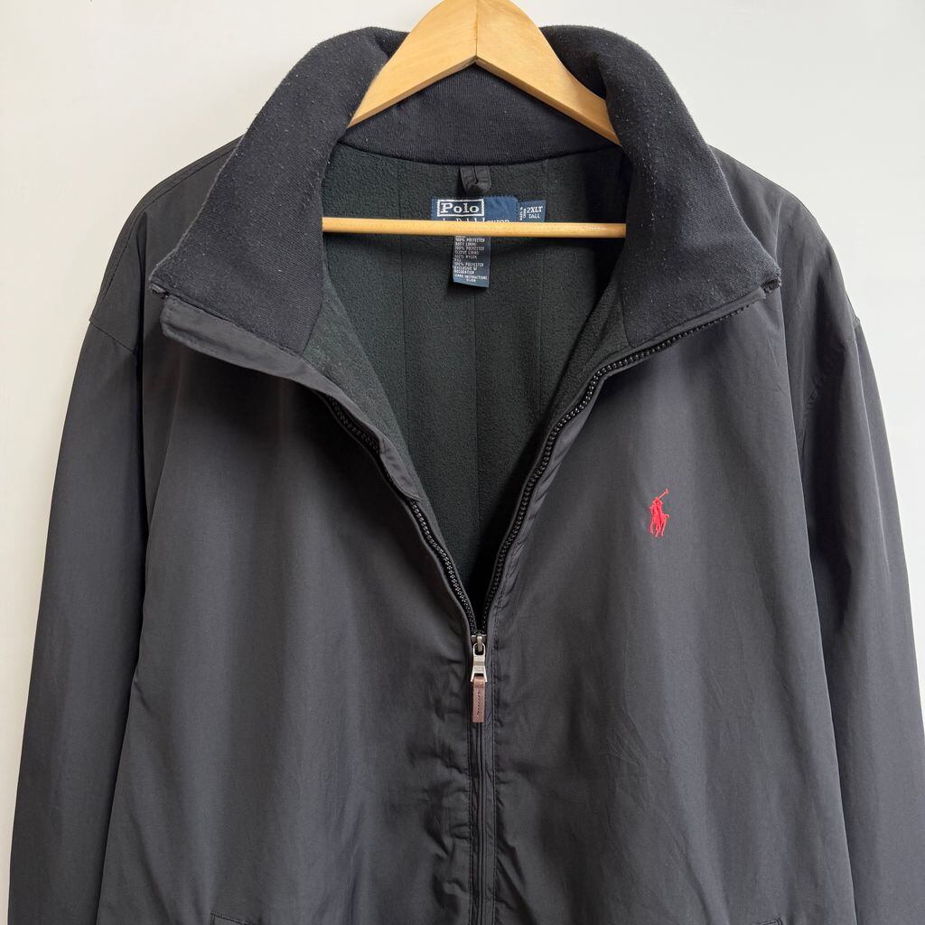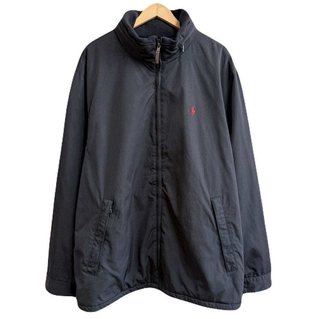 Polo Ralph Lauren ポロ ラルフローレン ウォームアップジャケット フード付き フリースライナー ナイロンジャケット フルジップ ポケット付き 黒 2XLTサイズ No.H296