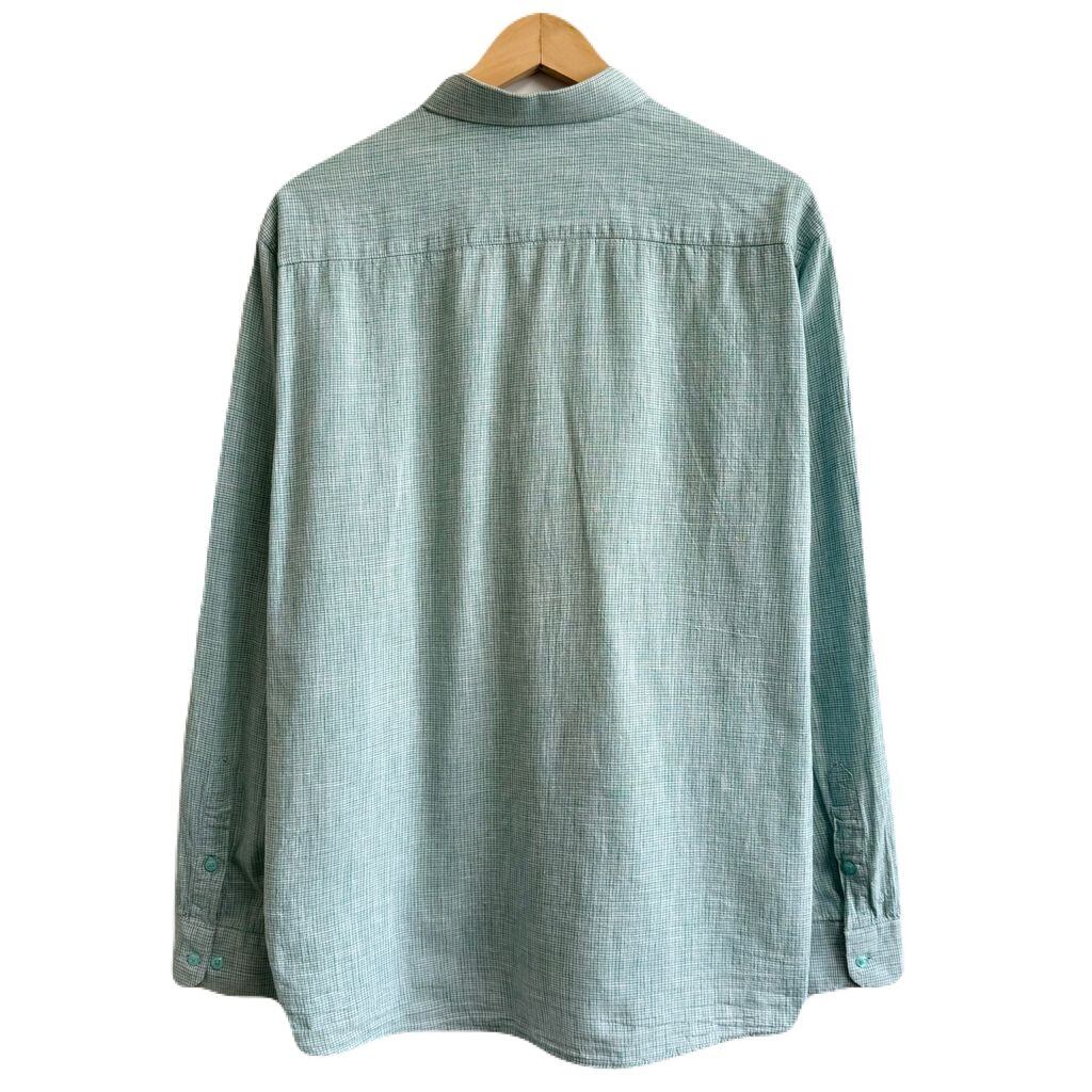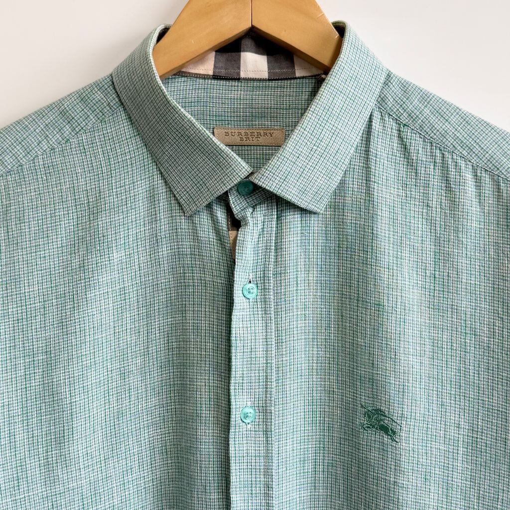 BURBERRY BRIT バーバリーブリット チェック柄 長袖シャツ ワンポイントロゴ 刺繍 緑×白×水色 L/Gサイズ No.H316