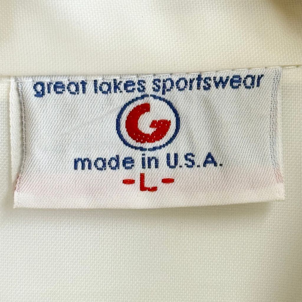USA製 great lakes sportswear レーシングジャケット ストライプ ワッペン AMVETS フルジップ ポケット付き 白 Lサイズ No.H349