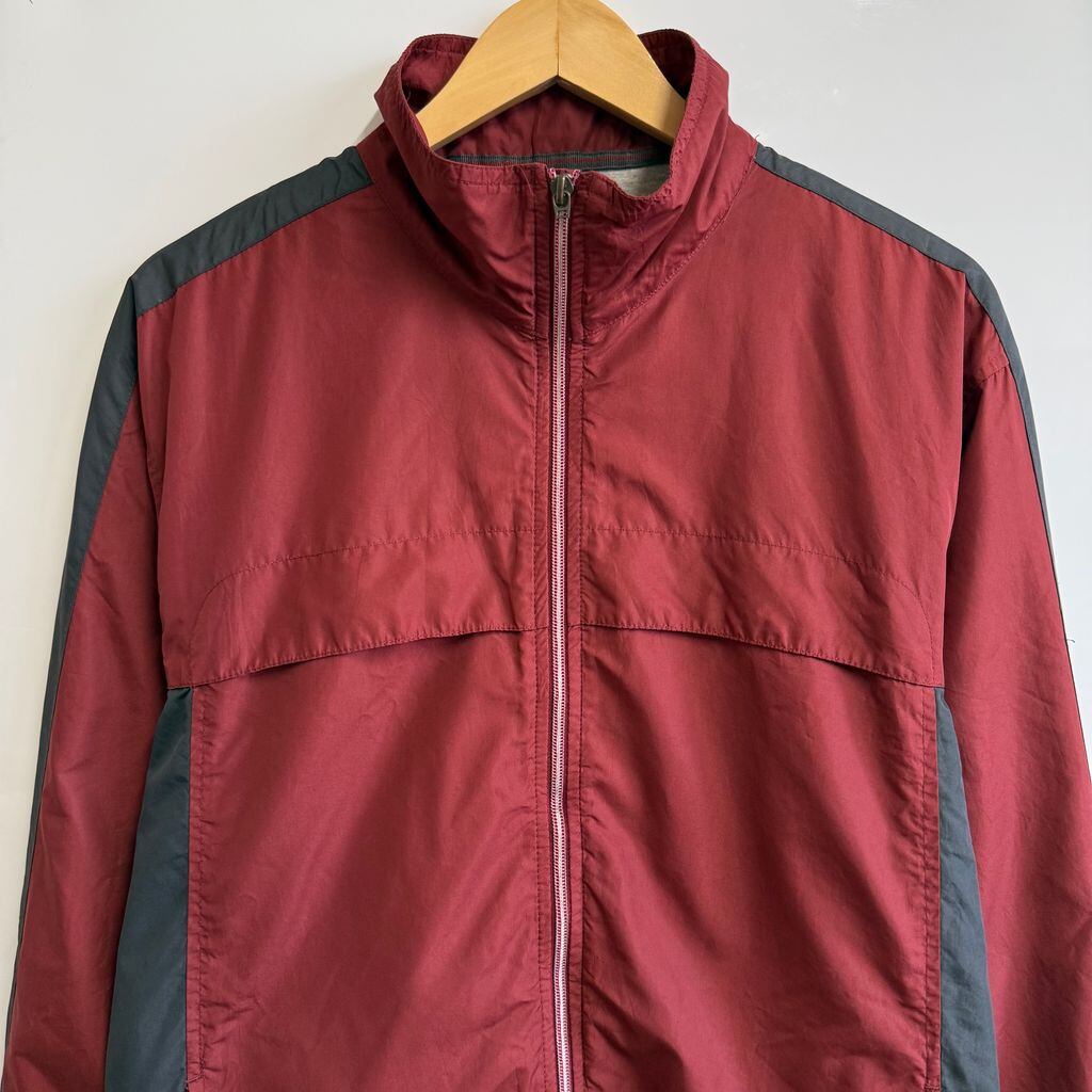 NIKE ナイキ ウィンドブレーカー バイカラー ワンポイントロゴ 刺繍 ハイネック フルジップ ポケット付き 赤茶×チャコールグレー Mサイズ No.H378