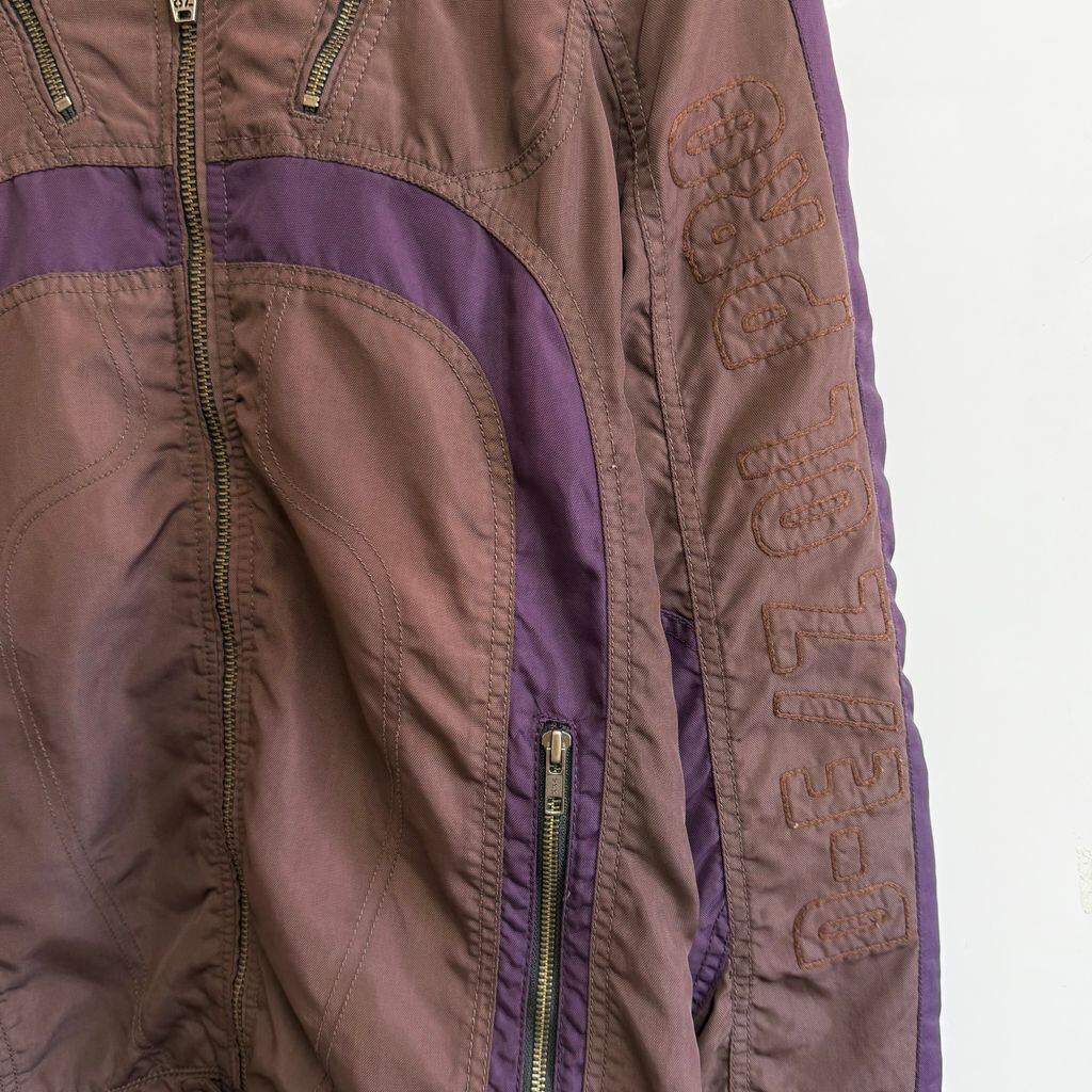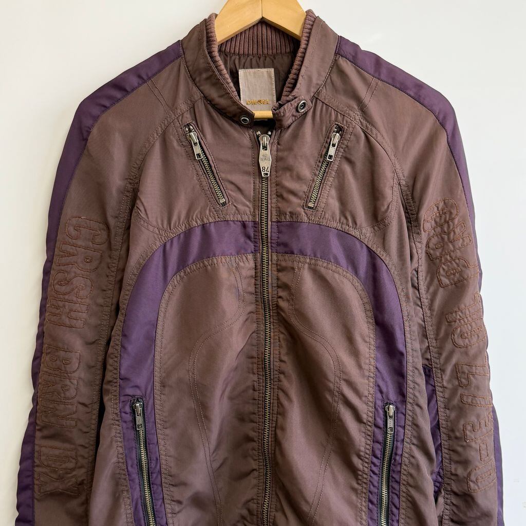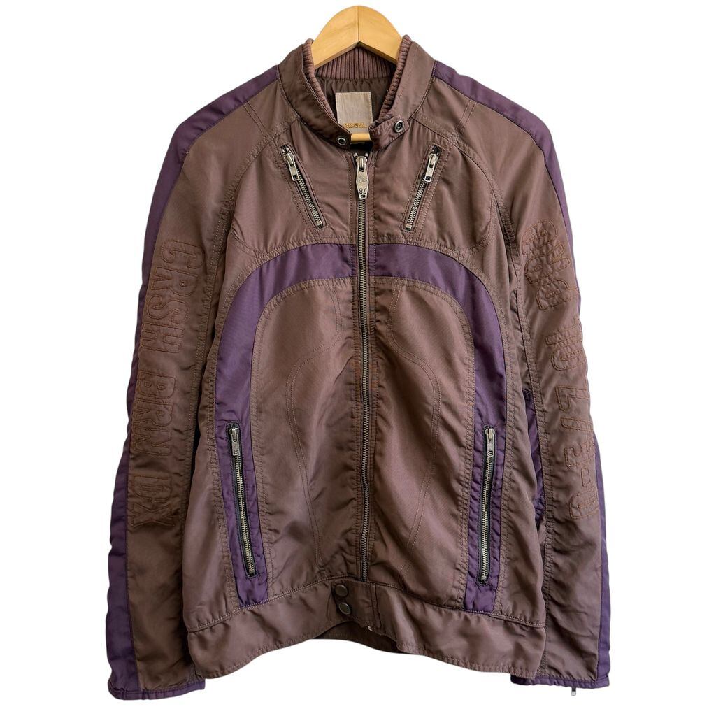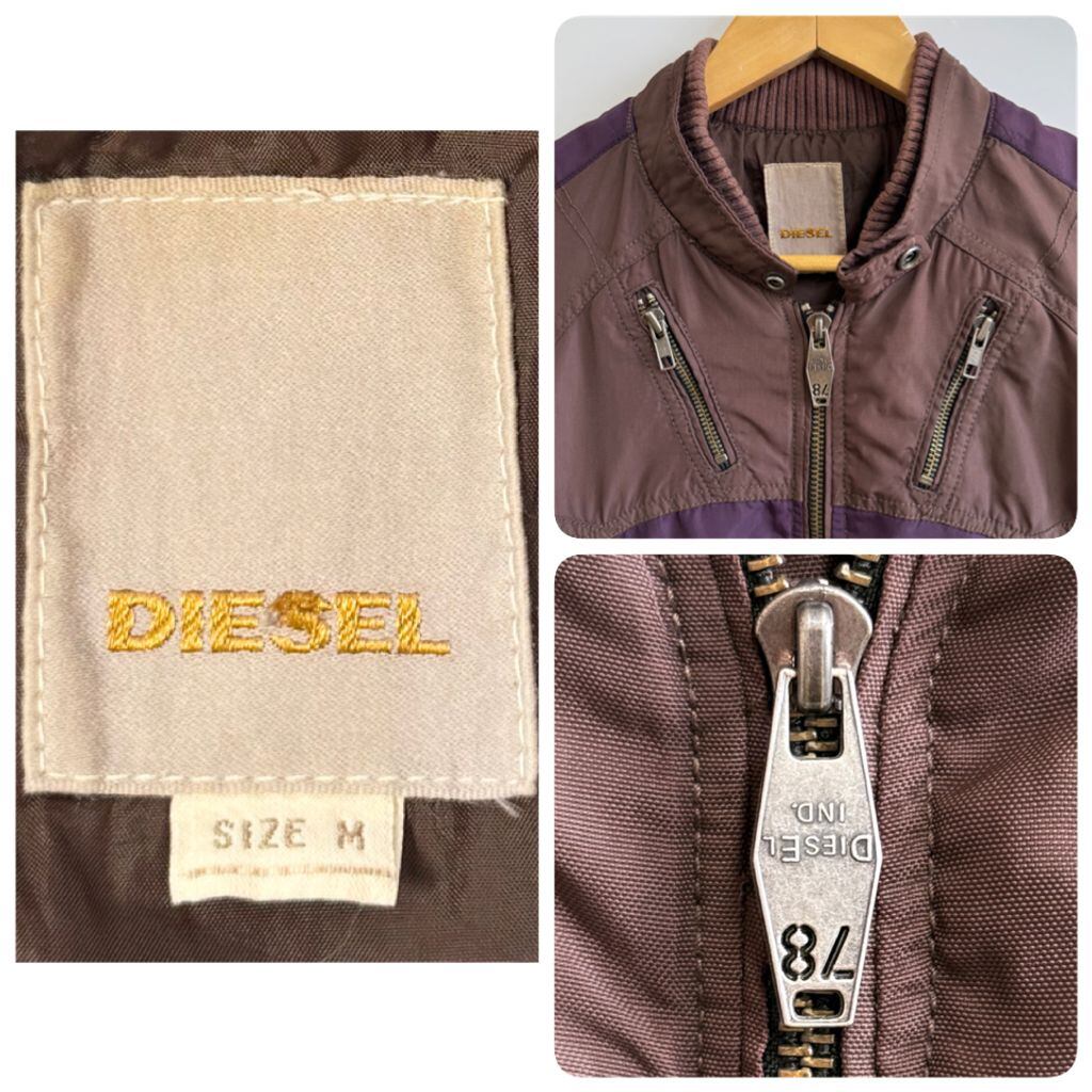 DIESEL ディーゼル レーシングジャケット ナイロンジャケット エルボーパッチ 刺繍 フルジップ ポケット付き 茶色×紫 Mサイズ No.H394