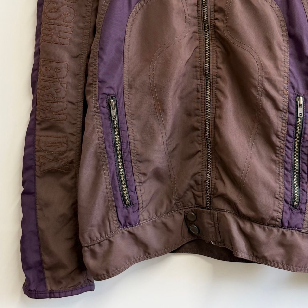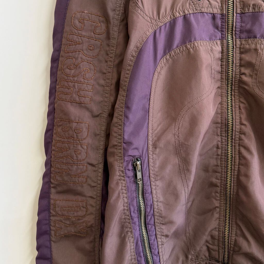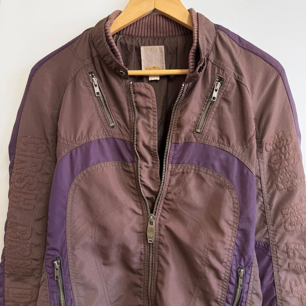 DIESEL ディーゼル レーシングジャケット ナイロンジャケット エルボーパッチ 刺繍 フルジップ ポケット付き 茶色×紫 Mサイズ No.H394