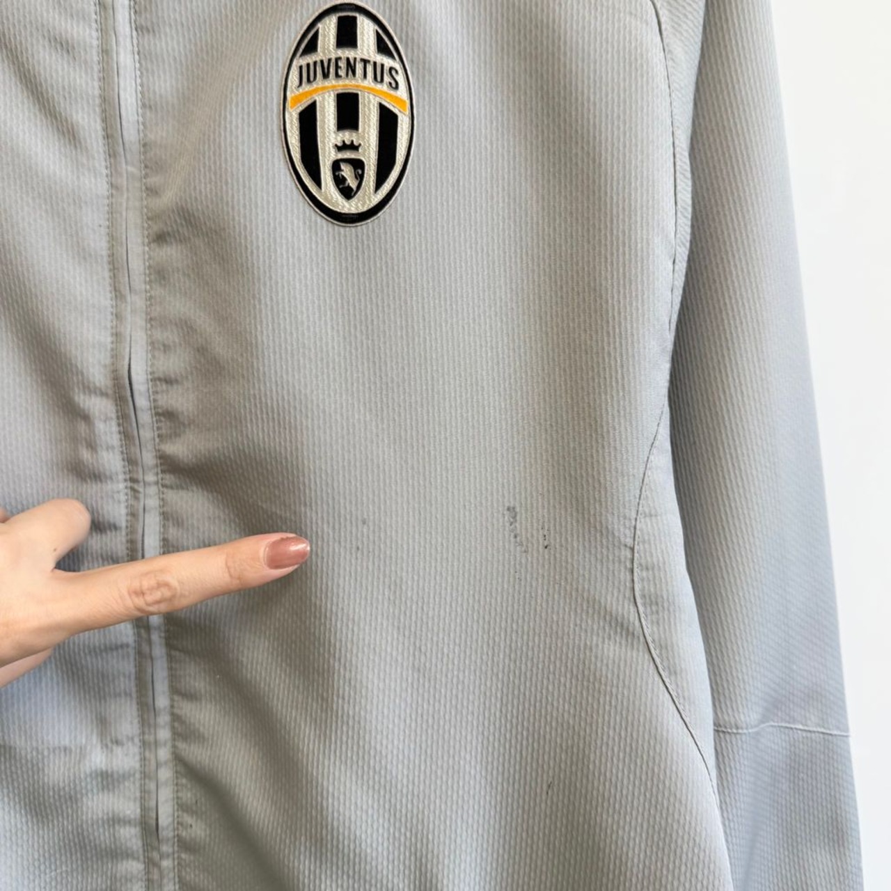 NIKE ナイキ ユベントス トレーニングジャケット 裏地メッシュ ロゴプリント フルジップ ポケット付き グレー Sサイズ No.H395
