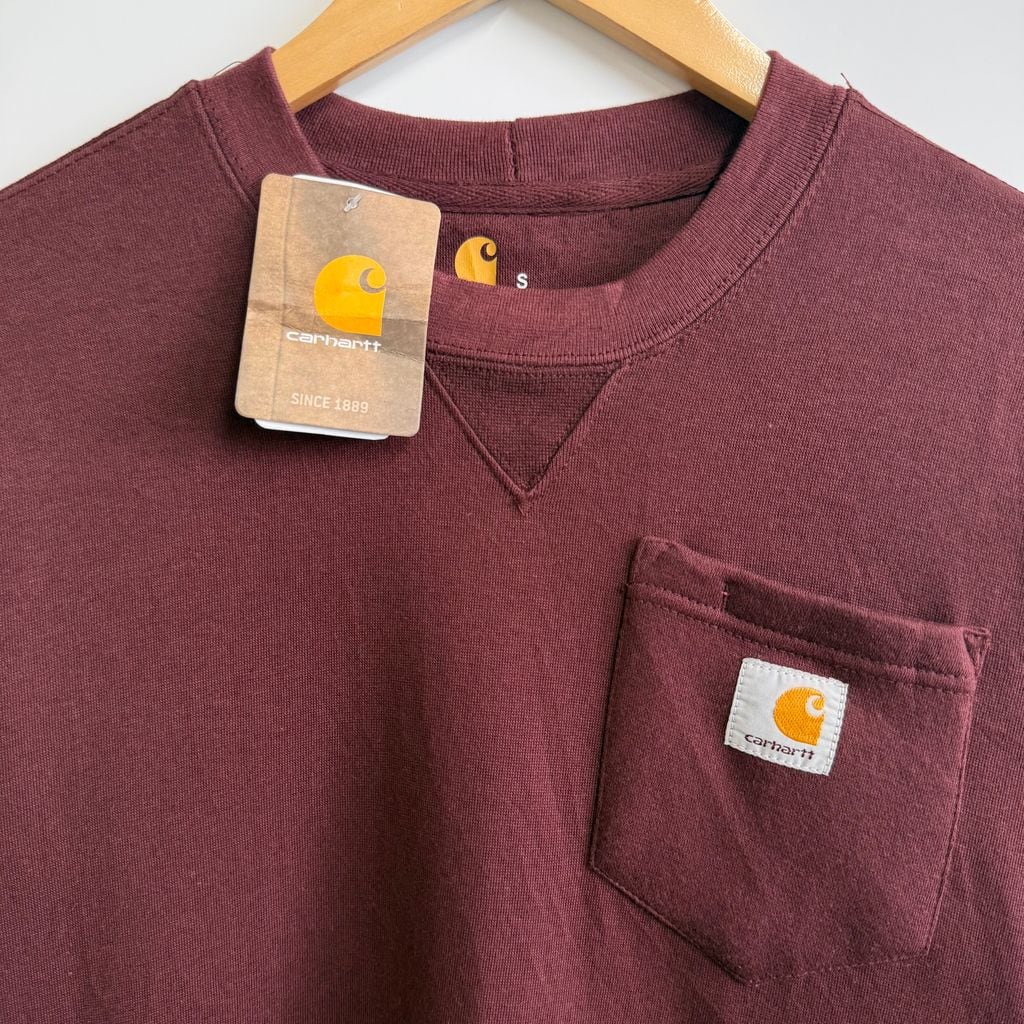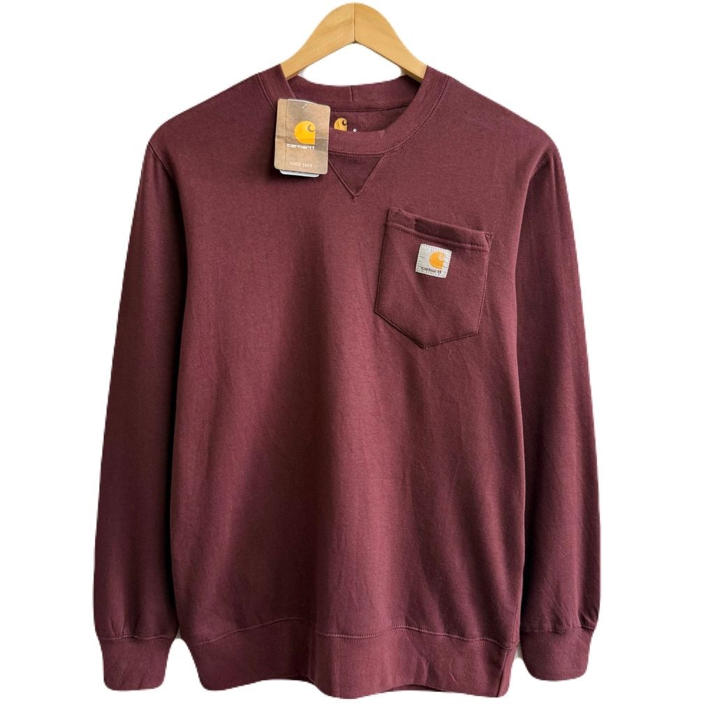 (デッドストック) Carhartt カーハート ORIGINAL FIT トレーナー スウェット 裏起毛 ロゴプリント ポケット付き あずき色 Sサイズ No.H412