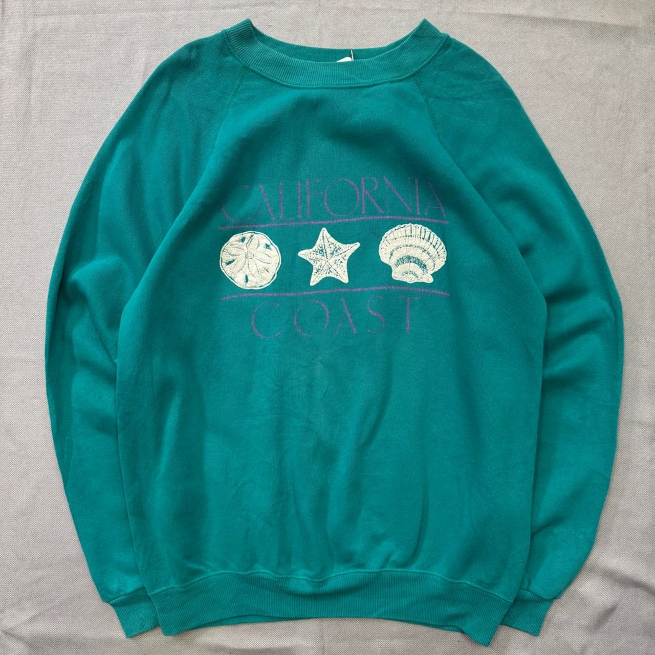 USA製 Hanes CALIFORNIA COAST ヘインズ カルフォルニア シェル ラグランスウェット トレーナー ターコイズブルー Mサイズ No.E785