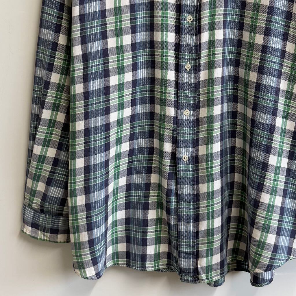 Ralph Lauren ラルフローレン ボタンダウンシャツ コットンシャツ チェック柄 長袖シャツ ワンポイントロゴ 刺繍 白×紺×緑×多色 XXLサイズ No.H447