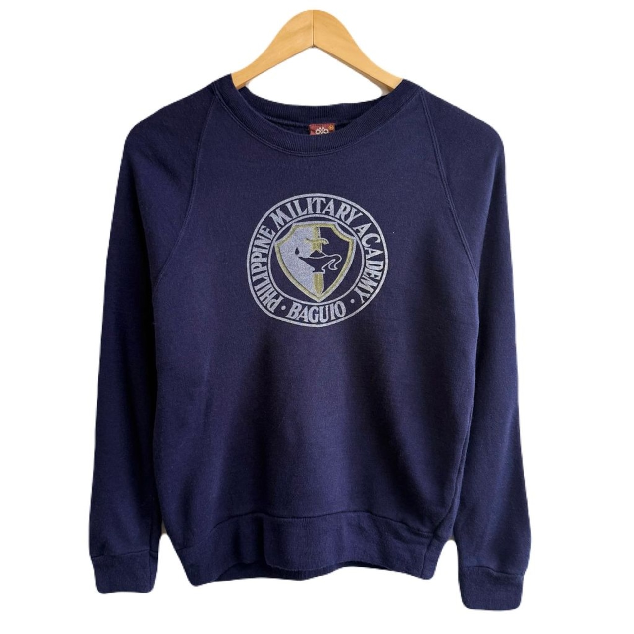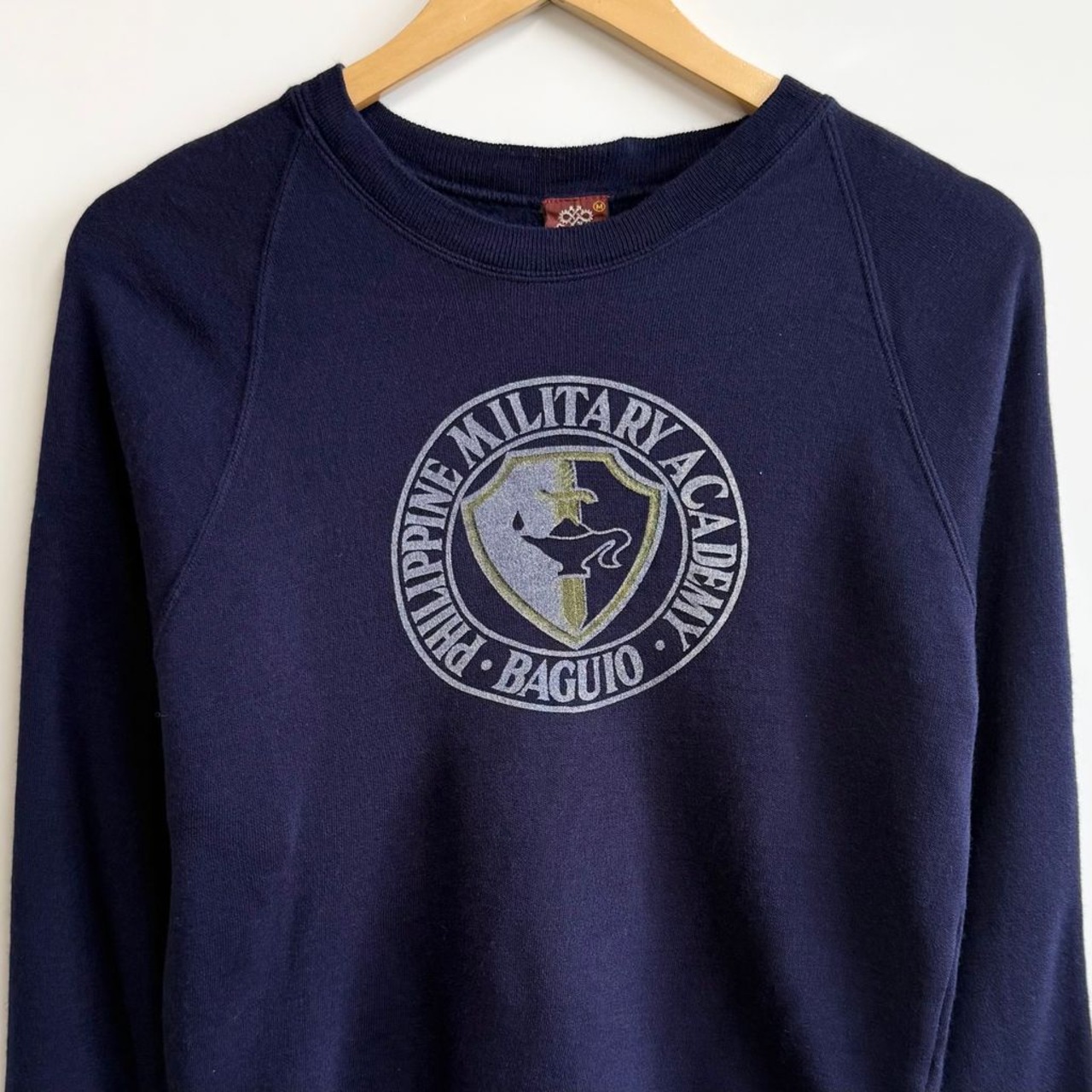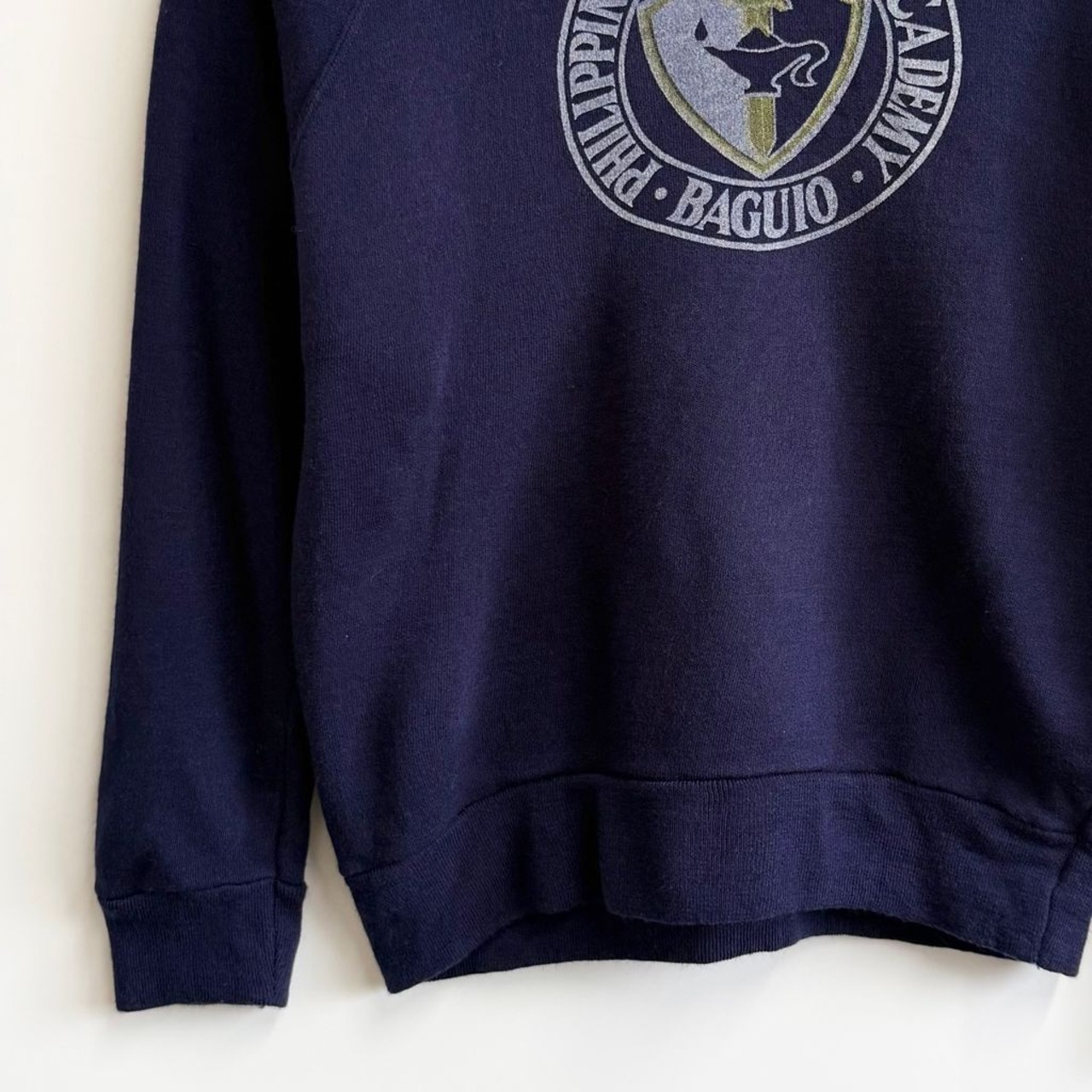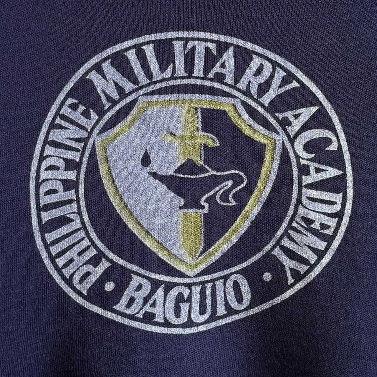 Saxon フロントプリント エンブレム Philippine フィリピン陸軍 ラグランスウェット トレーナー 裏起毛 紺 ネイビー Mサイズ No.H432