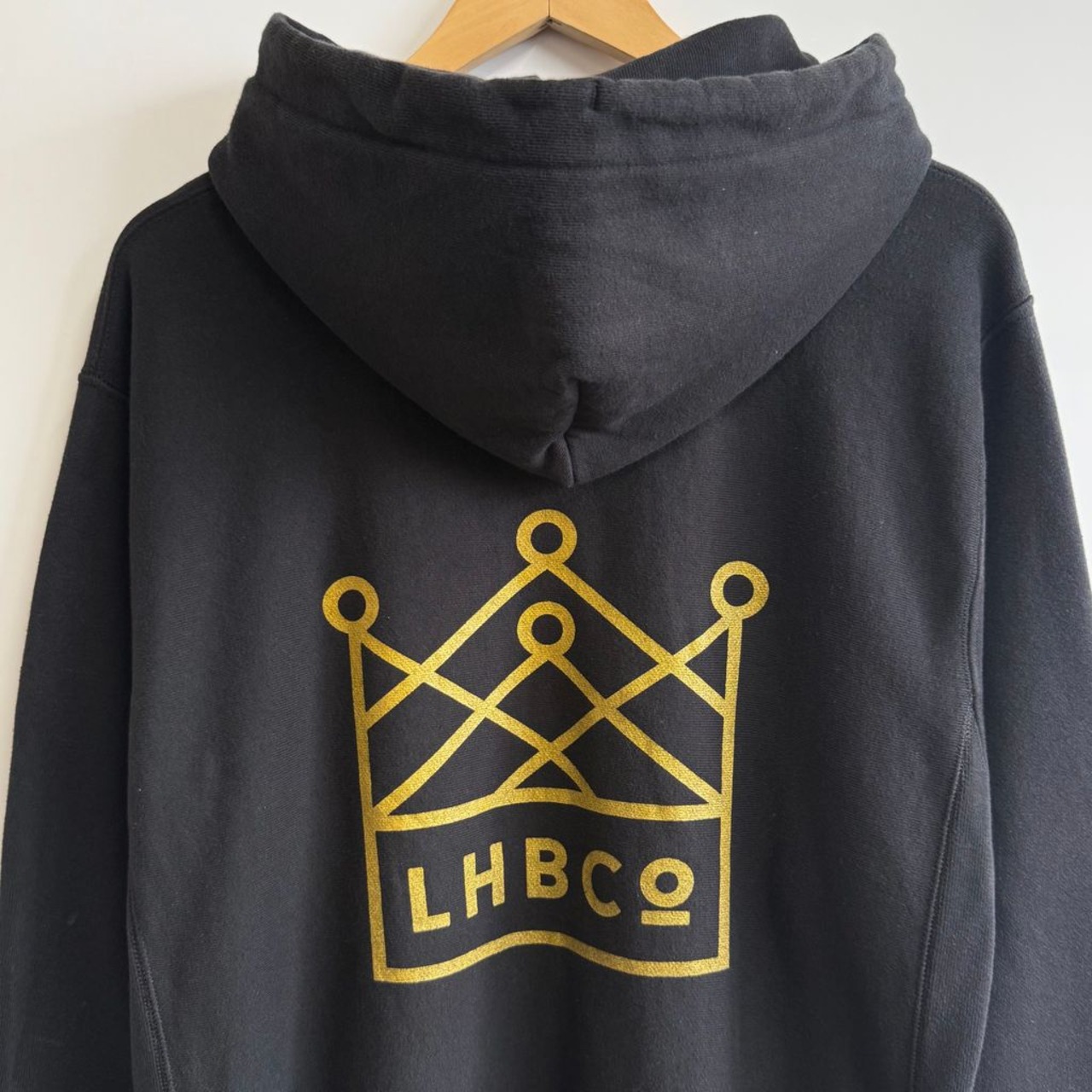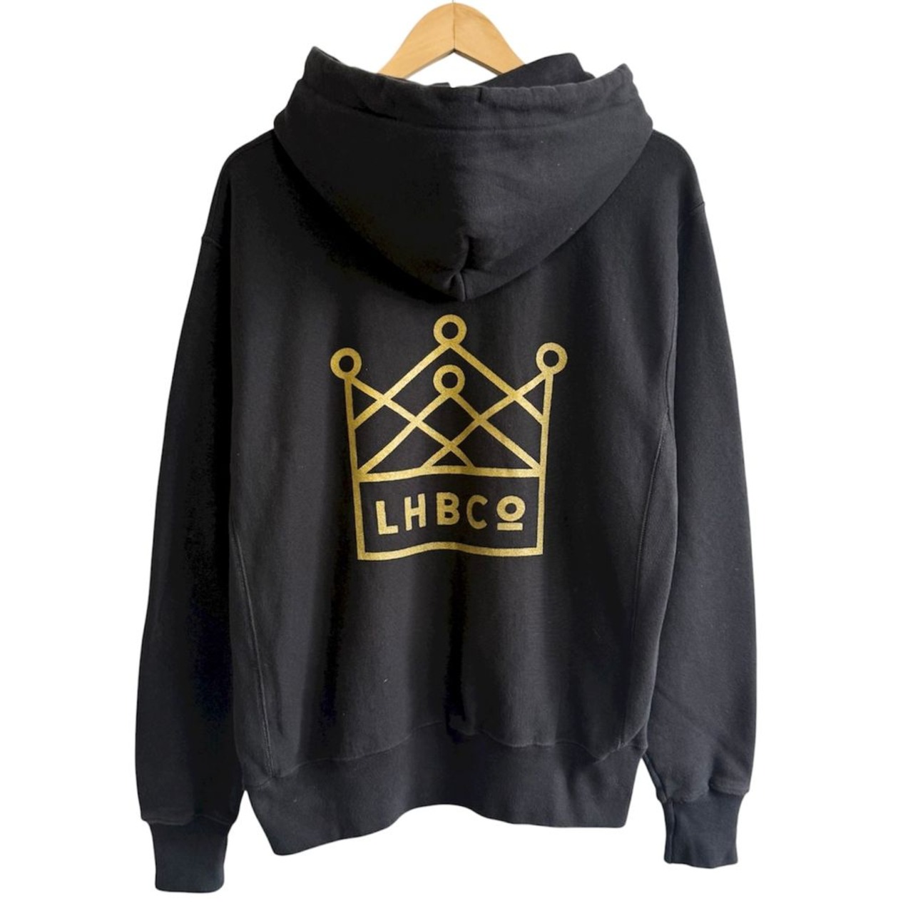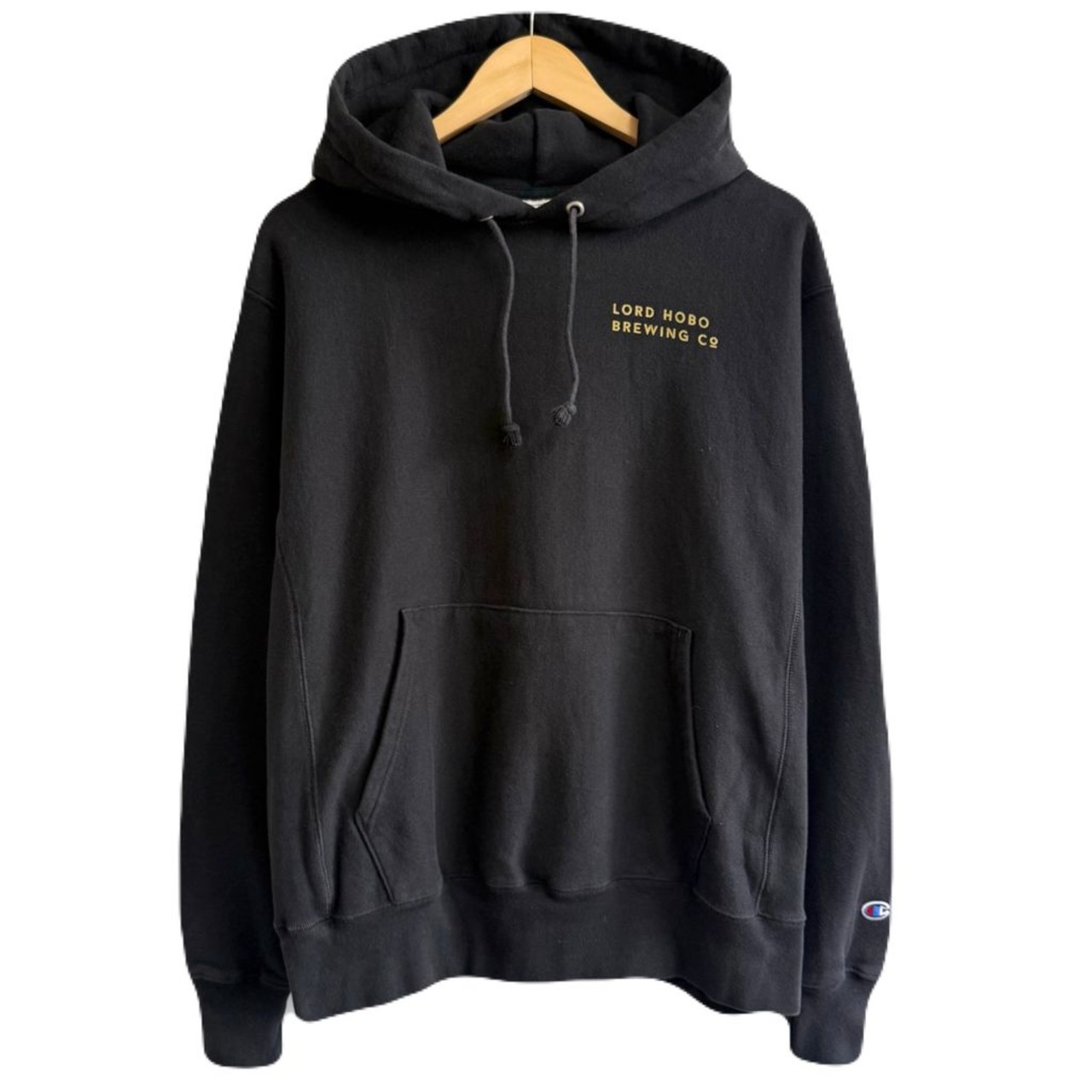 Champion チャンピオン 両面プリント バックプリント crown 王冠 LHBCO フーディー パーカー ポケット付き 裏起毛 黒 ブラック Mサイズ No.H437