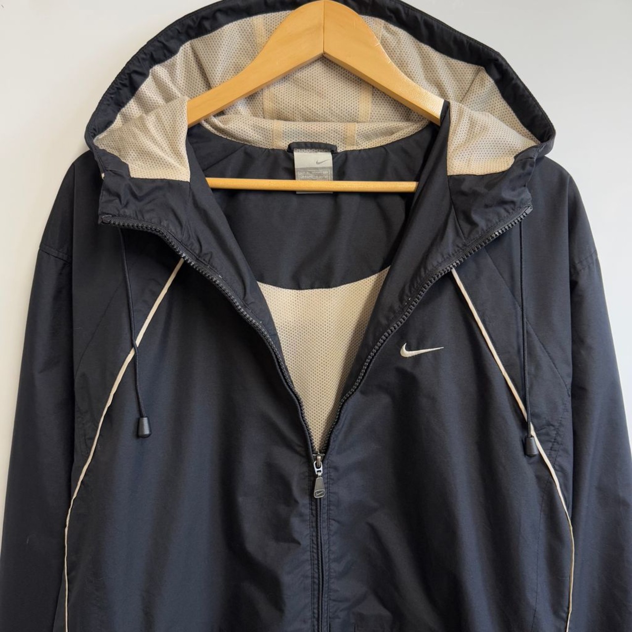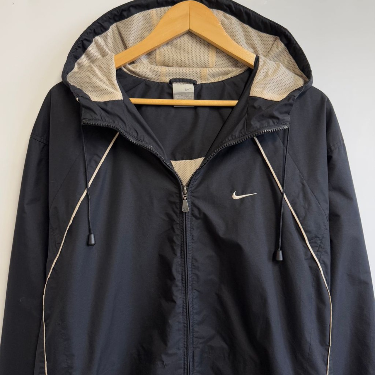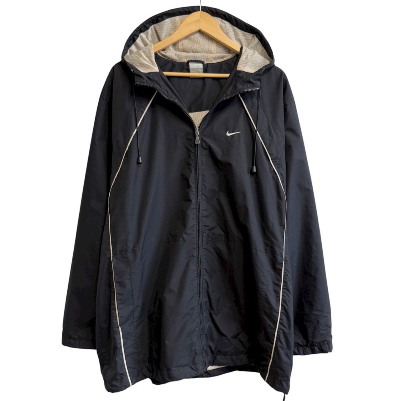 NIKE ナイキ ウィンドブレーカー フード付き ナイロンジャケット 裏地メッシュ フルジップ ポケット付き 黒 ブラック XLサイズ No.H455