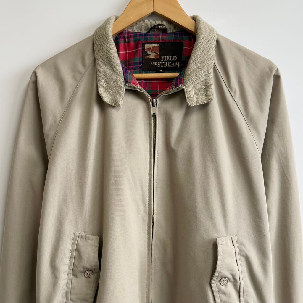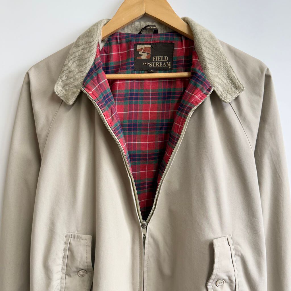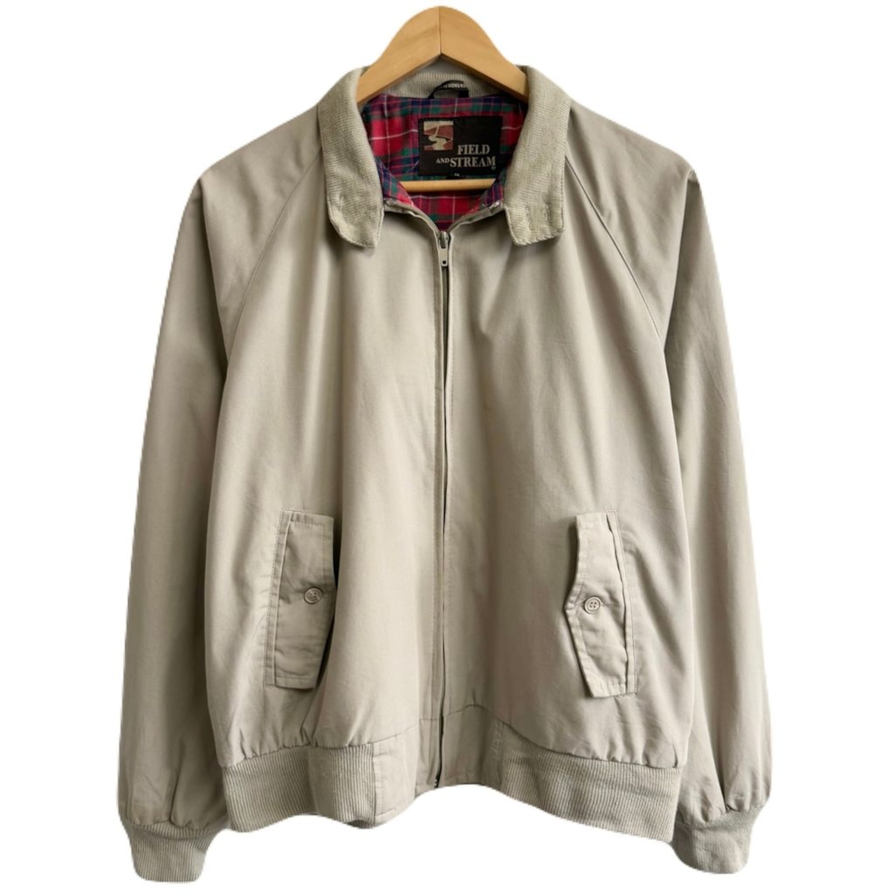 FIELD&STREAM ハリントンジャケット スウィングトップ 裏地チェック柄 フルジップ ポケット付き ベージュ Mサイズ No.H462