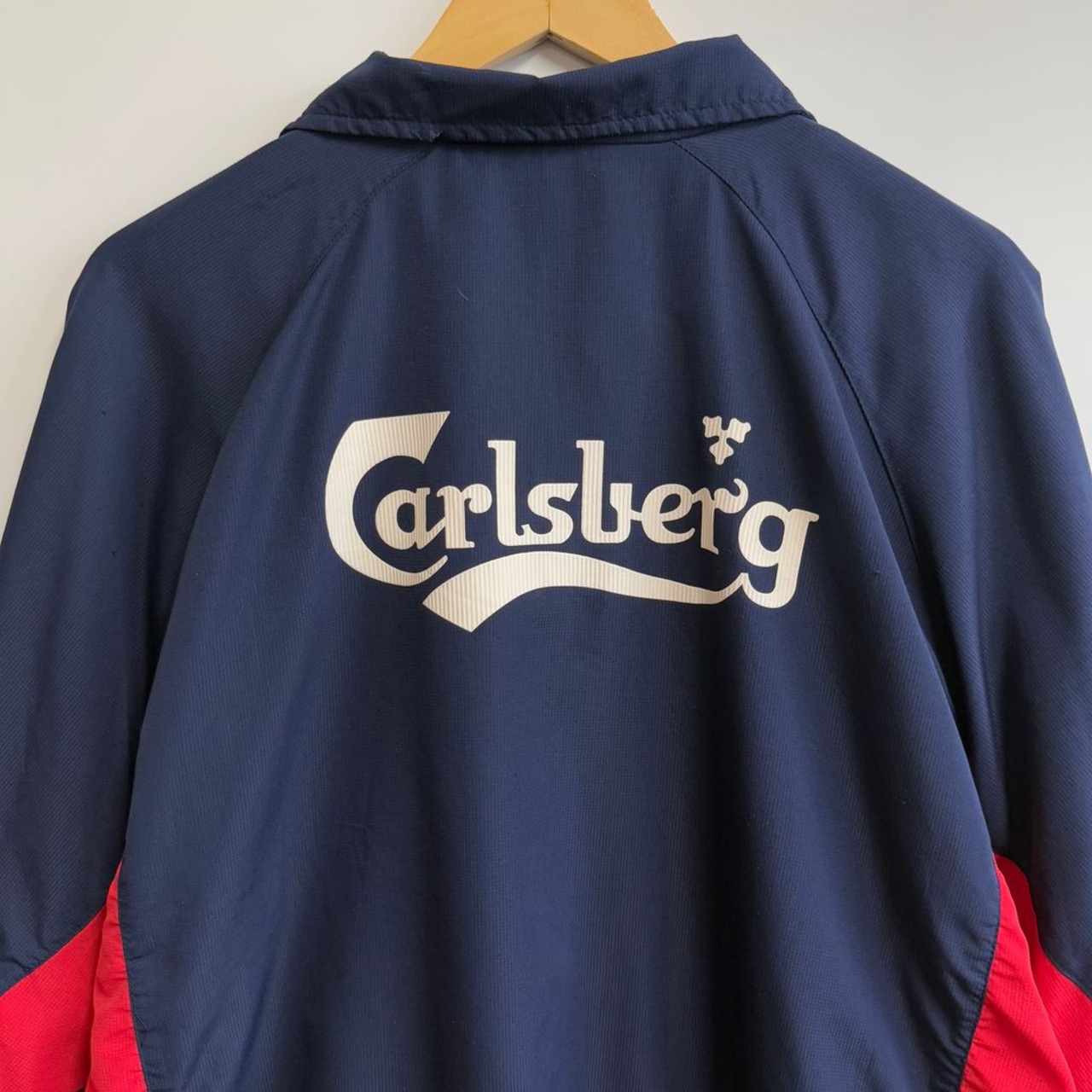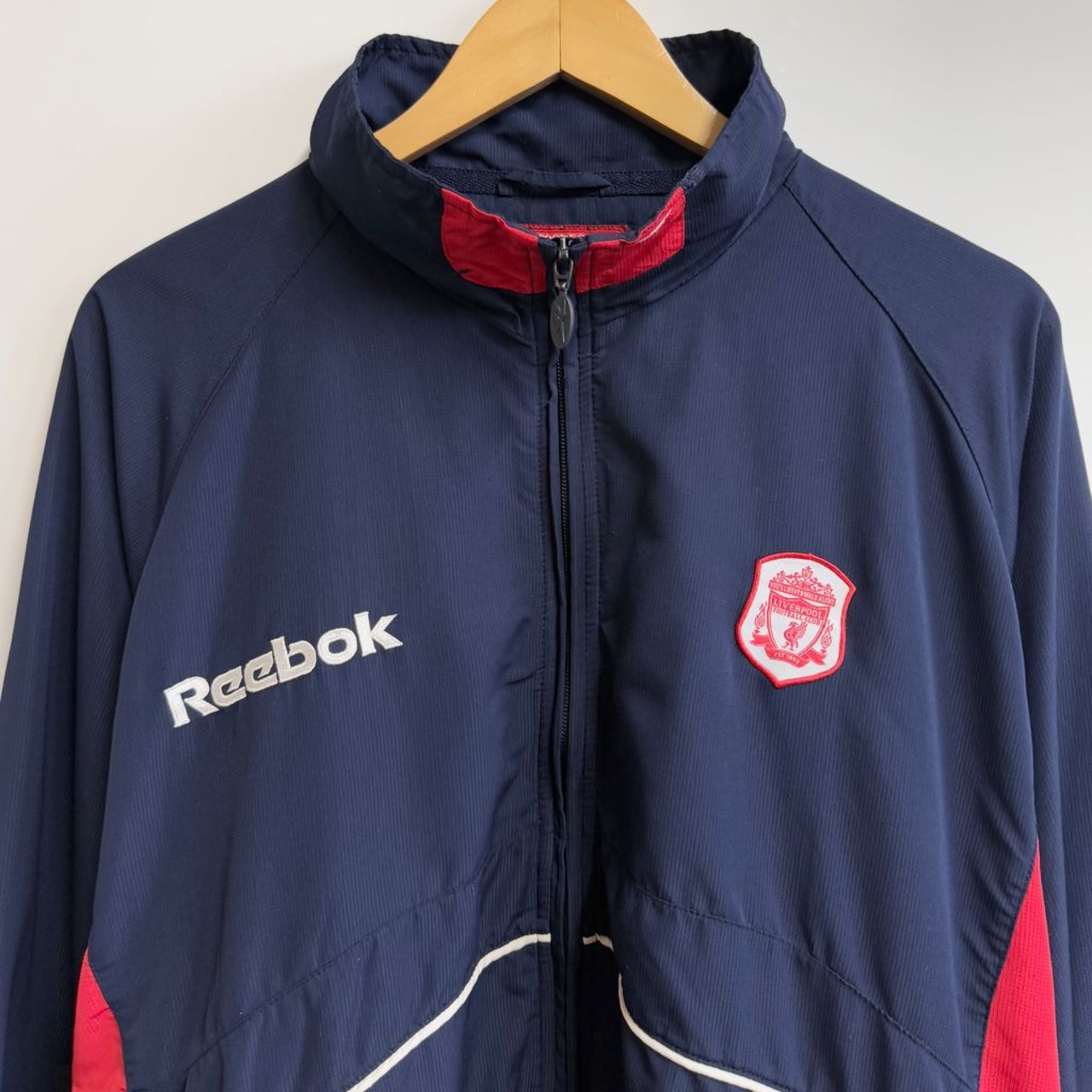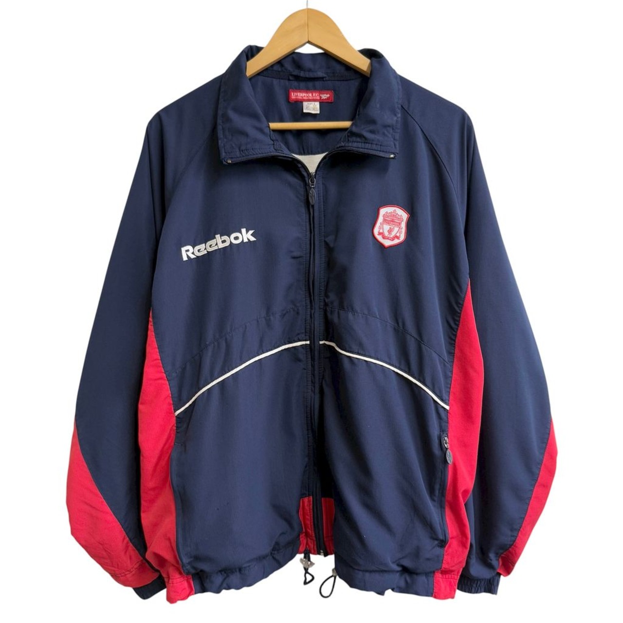 Reebok リーボック リバプールFC トラックジャケット トレーニングジャケット エンブレム ワッペン フルジップ ポケット付き 紺×赤 Lサイズ No.H467