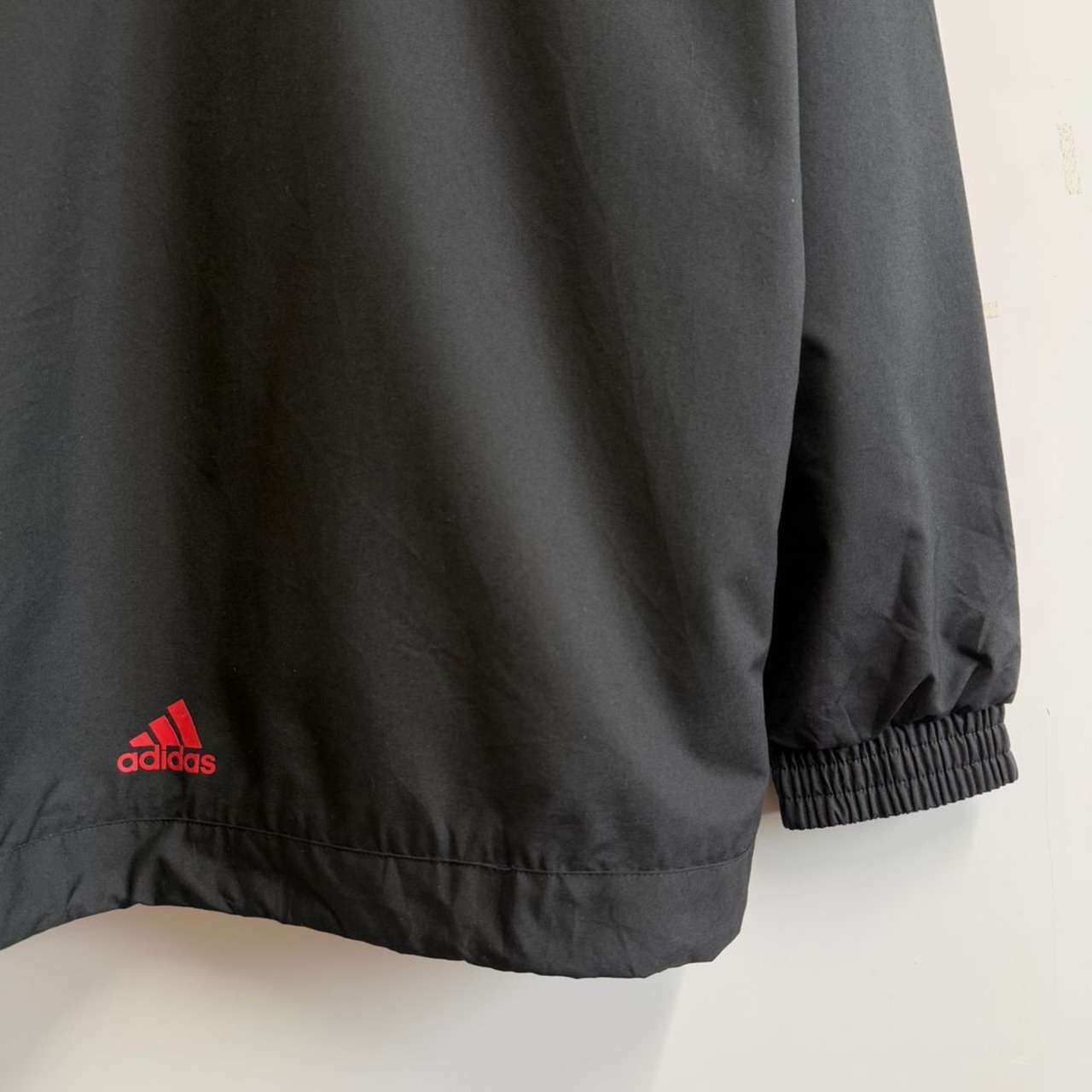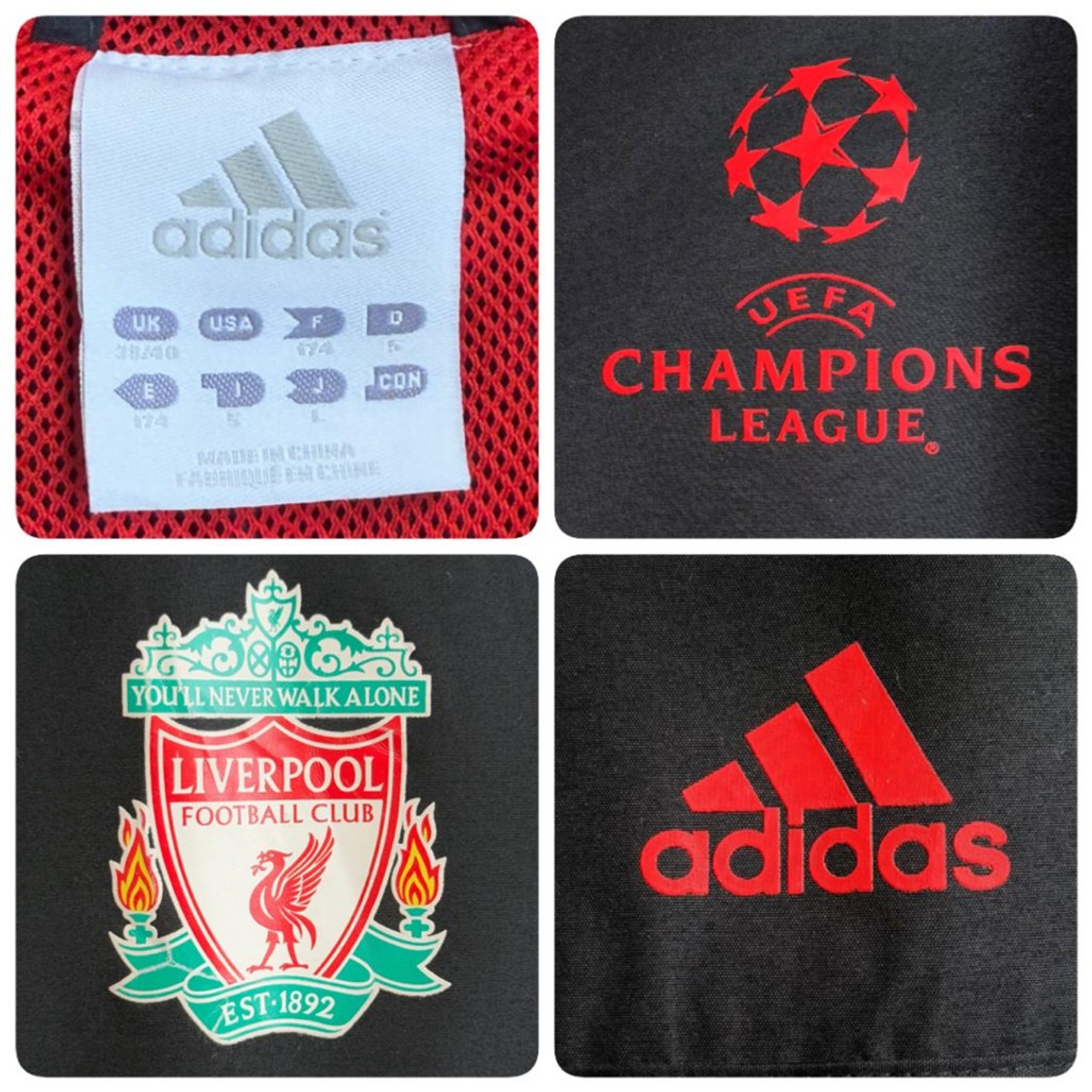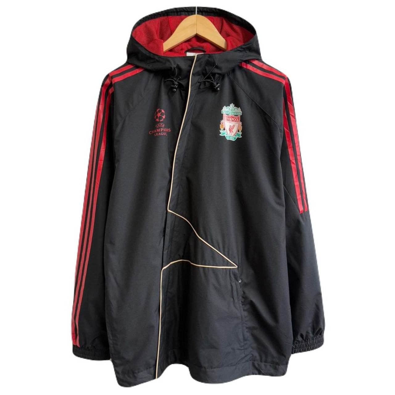 adidas アディダス リヴァプール チャンピオンズリーグ ナイロンジャケット フード付き 裏地メッシュ フルジップ ポケット付き 黒×赤 Lサイズ No.H468