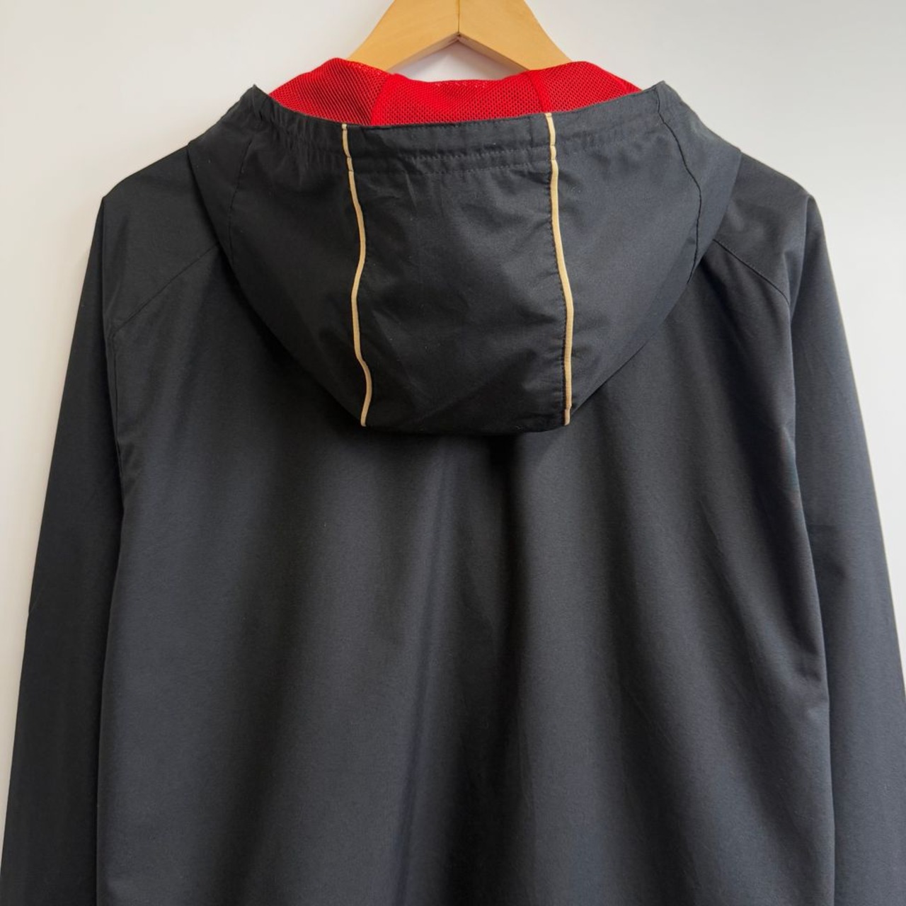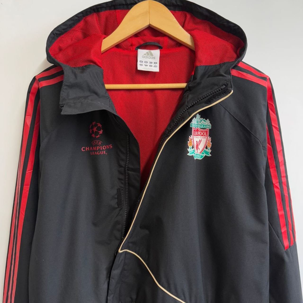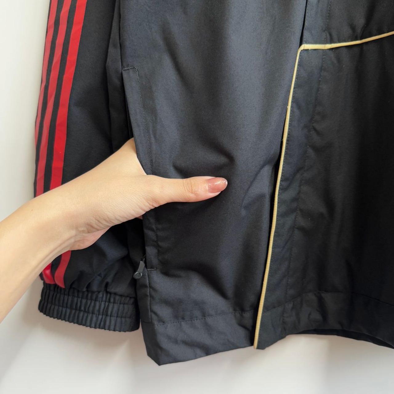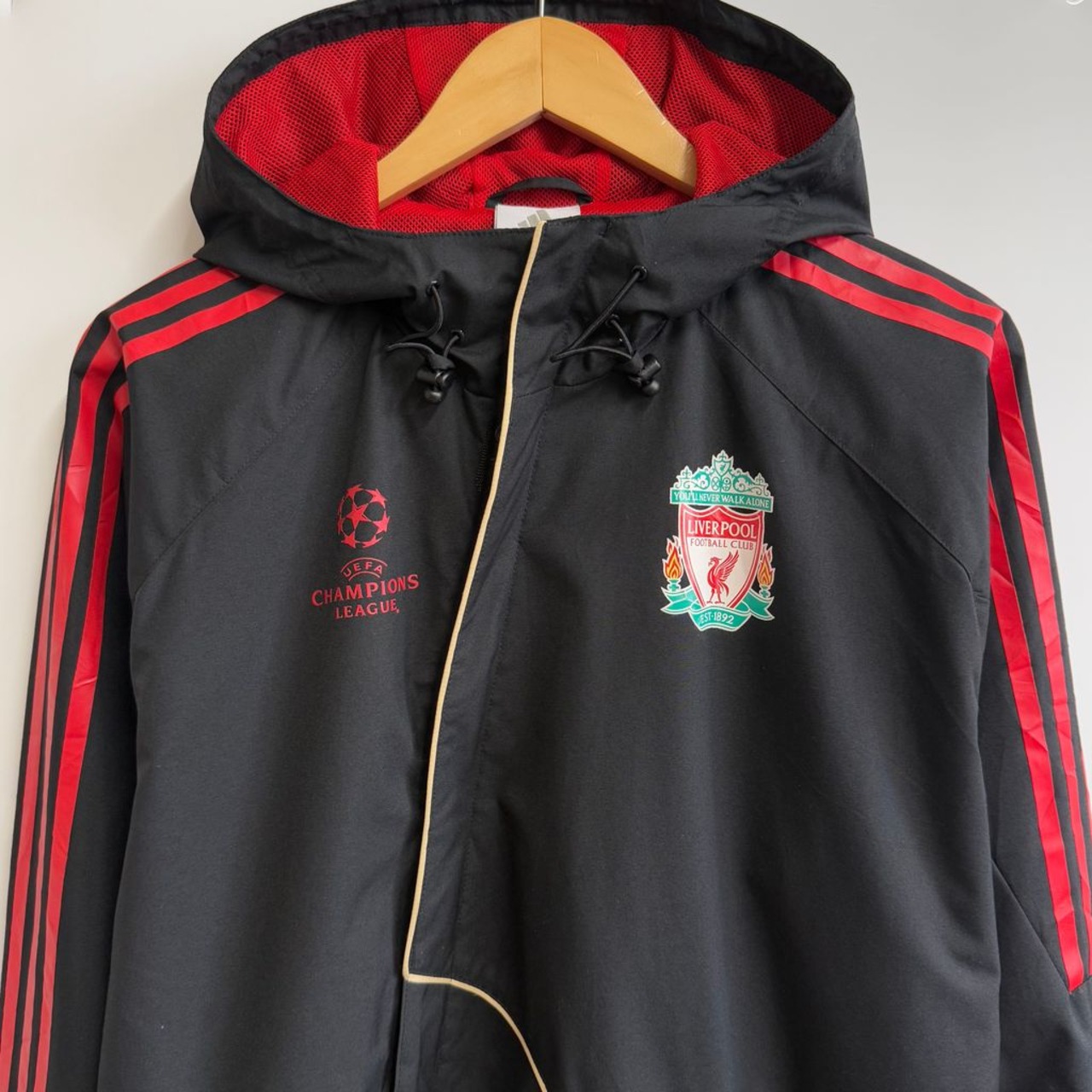 adidas アディダス リヴァプール チャンピオンズリーグ ナイロンジャケット フード付き 裏地メッシュ フルジップ ポケット付き 黒×赤 Lサイズ No.H468