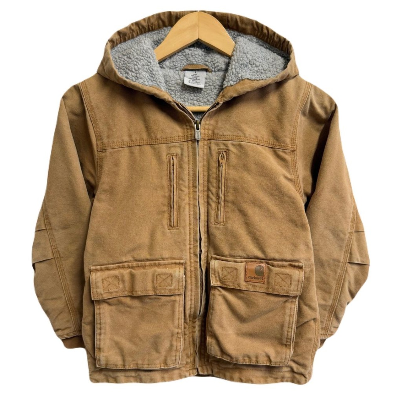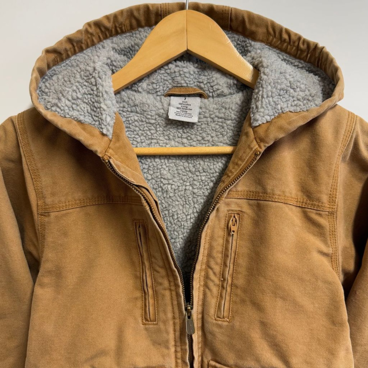 (キッズ) Carhartt カーハート ダックジャケット 裏ボア コットンジャケット 茶色 ブラウン サイズ7 No.H473