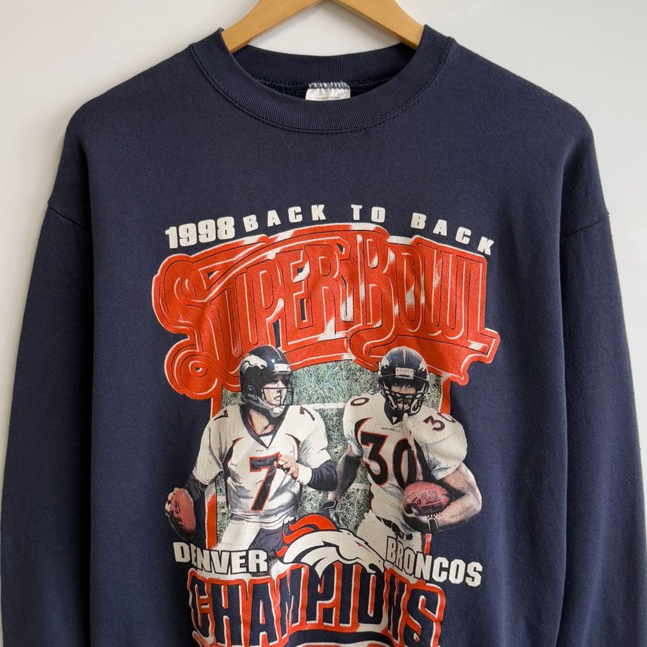 90's USA製 TULTEX タルテックス スーパーボウル デンバーブロンコス アメフト トレーナー スウェット 紺 ネイビー Mサイズ No.H493