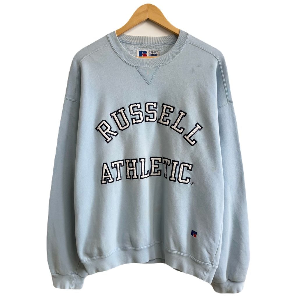 RUSSELL ATHLETIC ラッセル ロゴワッペン ロゴ刺繍 トレーナー スウェット 水色 ブルー Mサイズ No.H494
