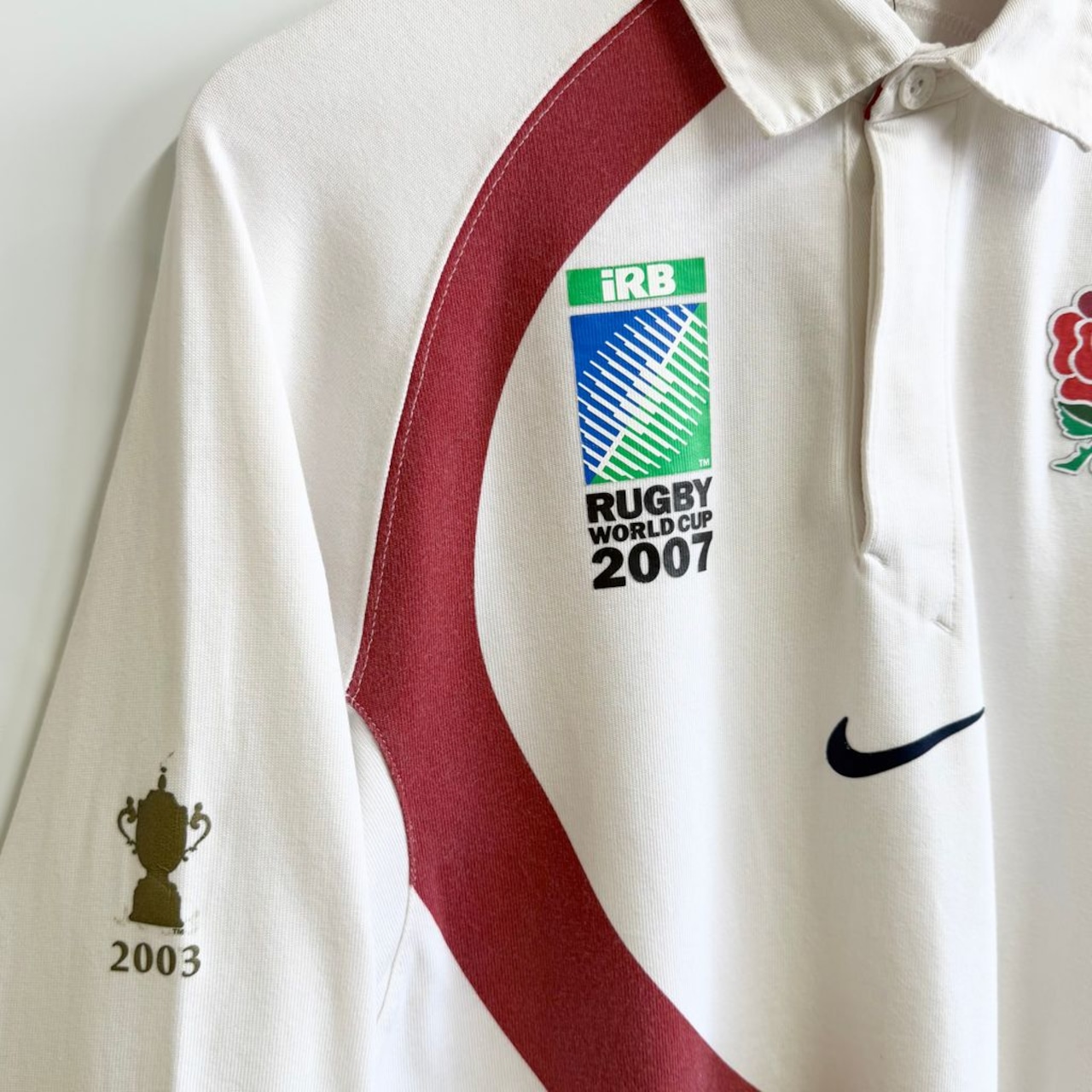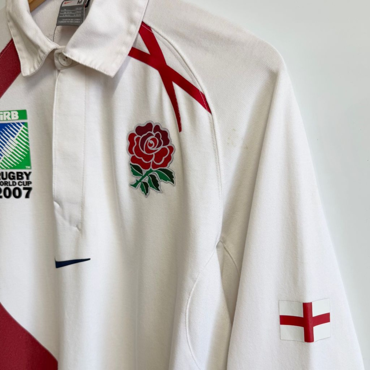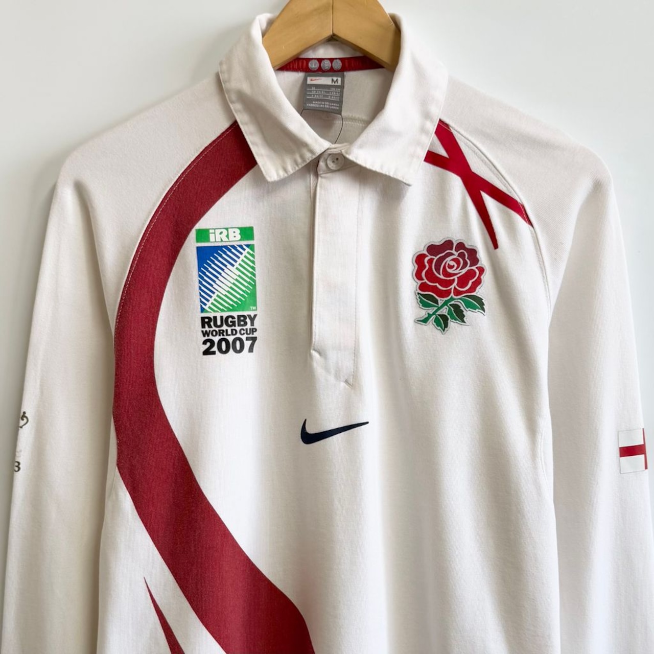 NIKE ナイキ ラグビーワールドカップ 2007 ラガーシャツ ユニフォーム イングランド 白×赤 Mサイズ No.H495