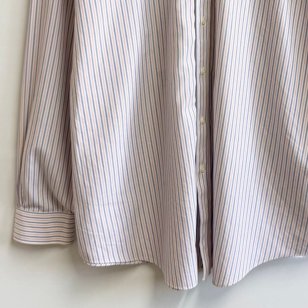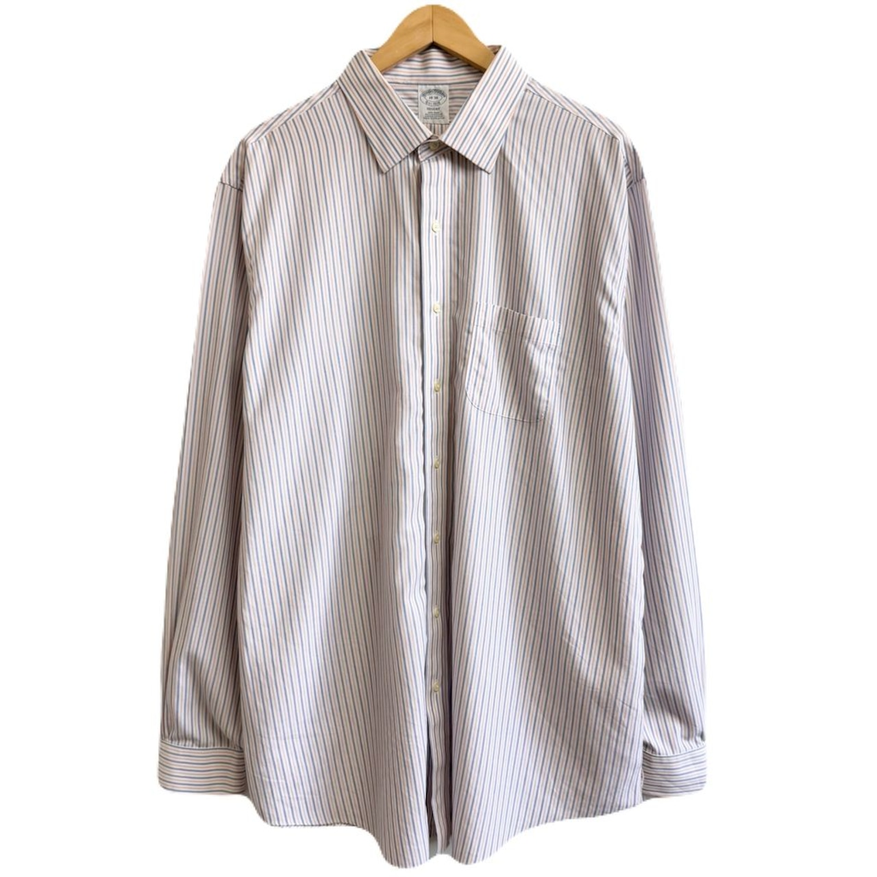 Brooks Brothers ブルックスブラザーズ コットンシャツ ストライプ ポケット付き 長袖シャツ 白×青×オレンジ No.H499