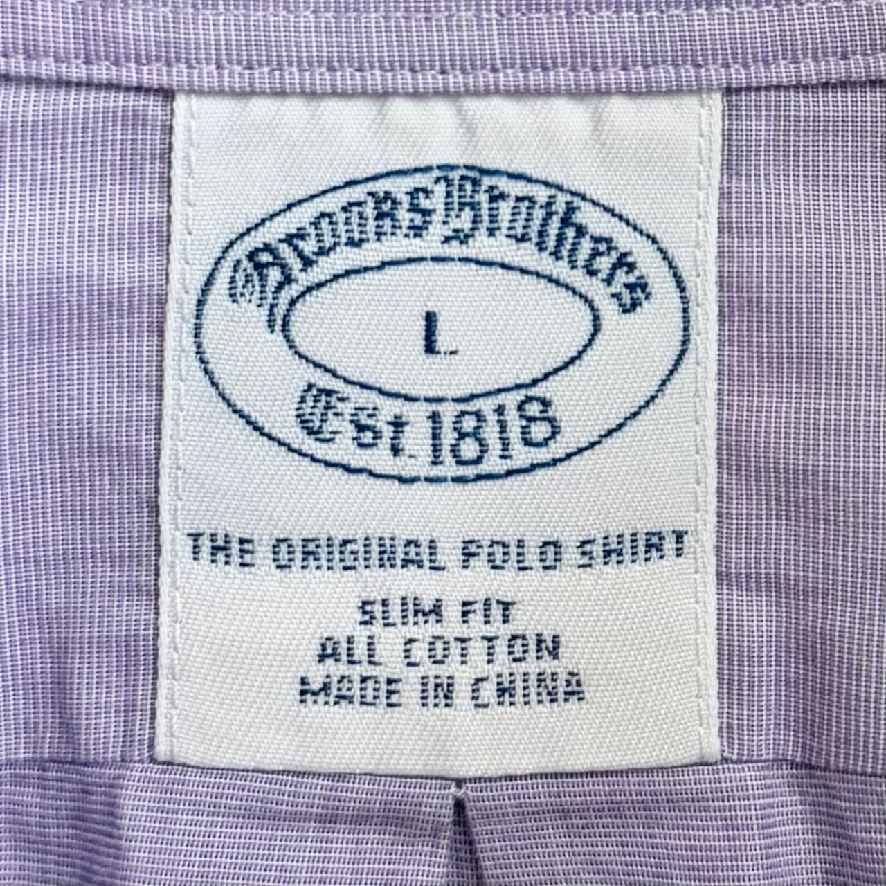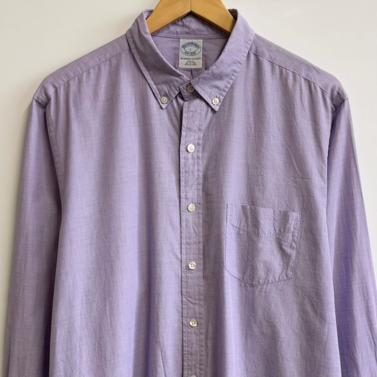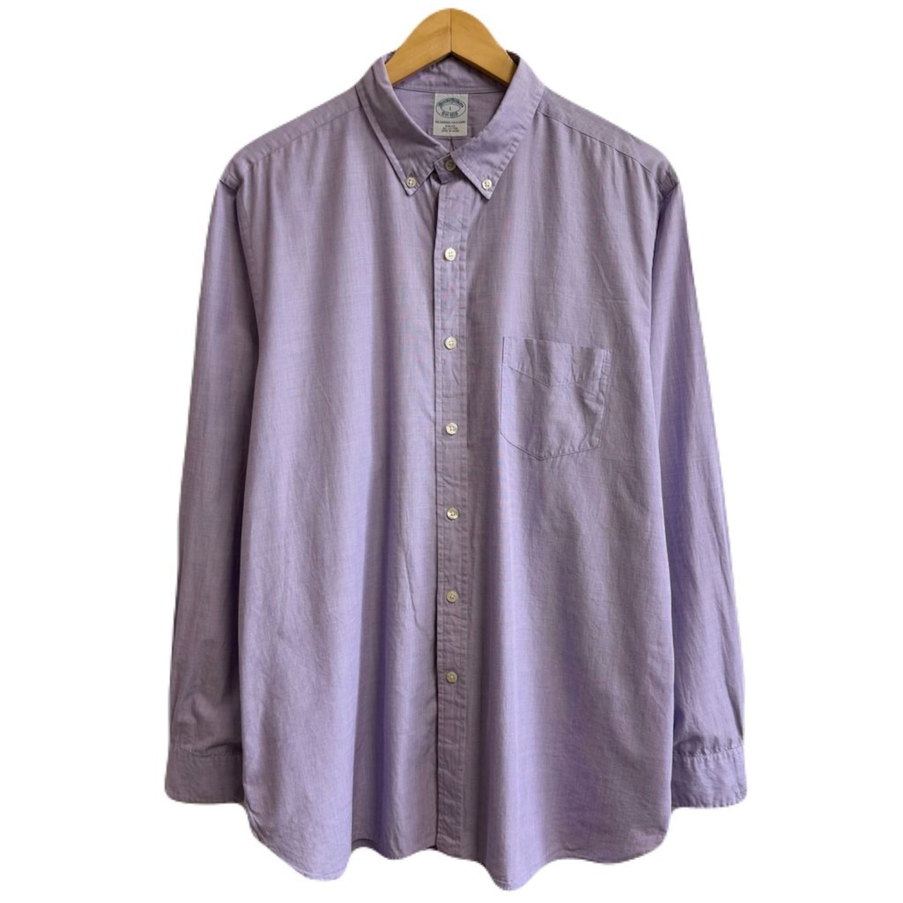 Brooks Brothers ブルックスブラザーズ ボタンダウンシャツ コットンシャツ 無地 ポケット付き 長袖シャツ ラベンダー 薄紫 Lサイズ No.H502