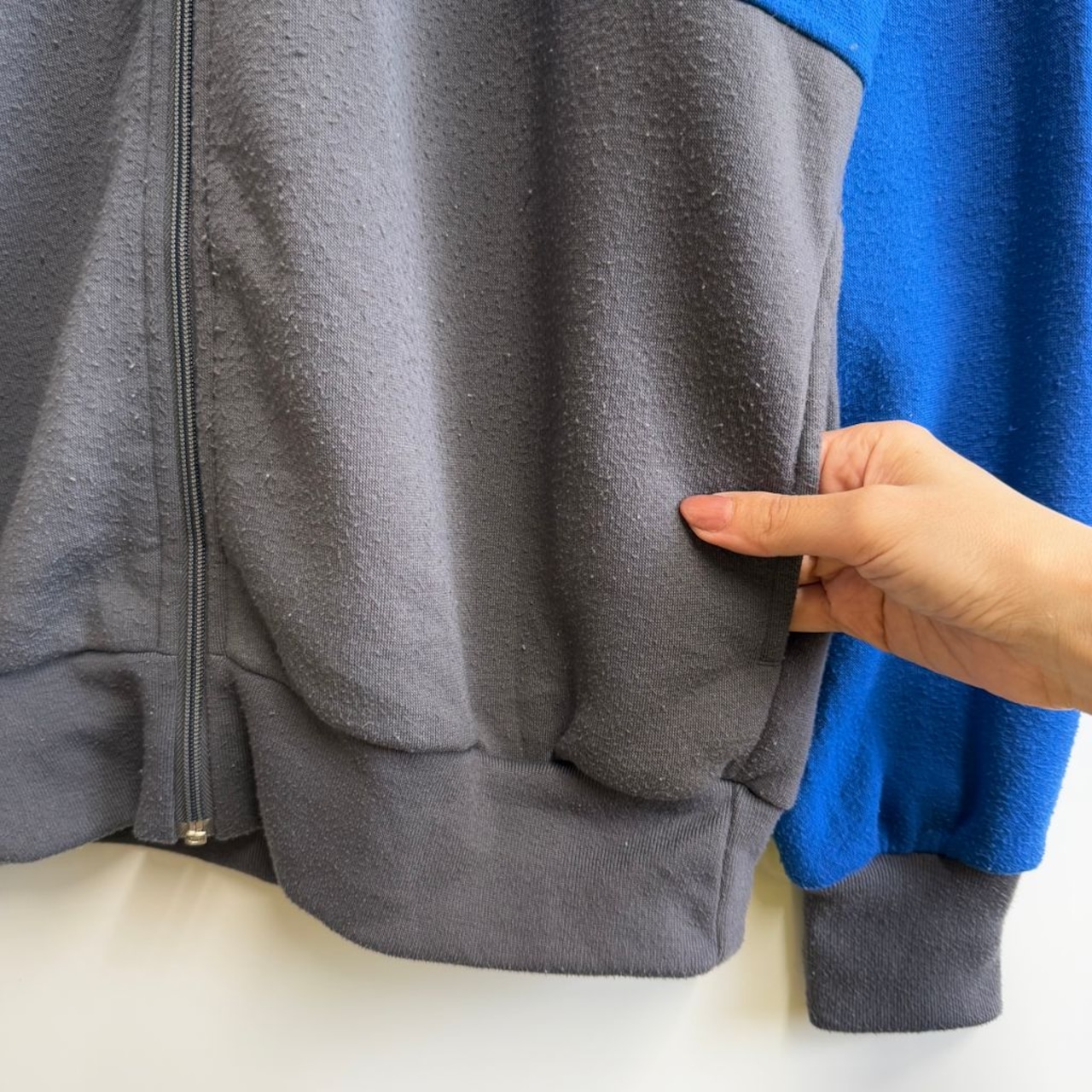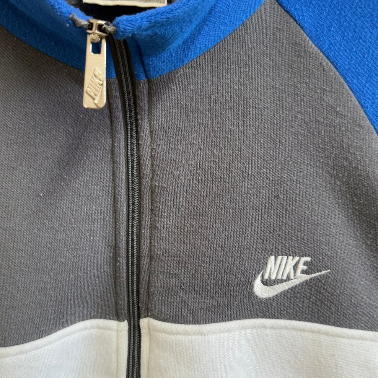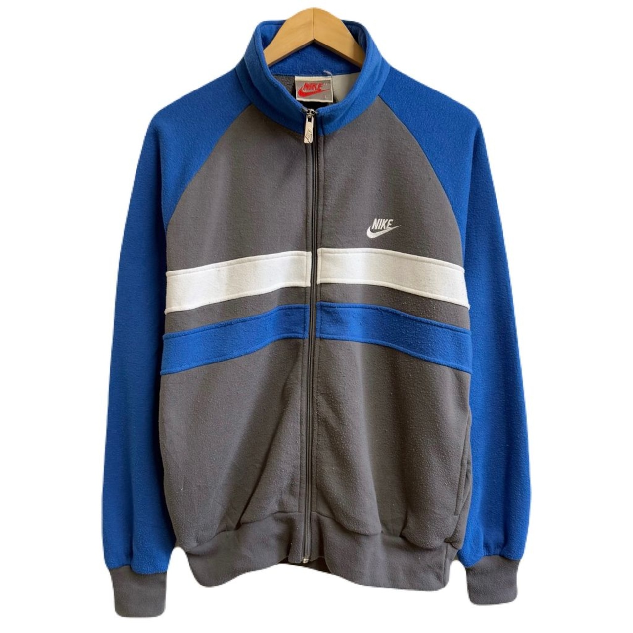 90's NIKE ナイキ トラックジャケット ジャージ 裏起毛 フルジップ ポケット付き 青×グレー×白 Lサイズ No.H506