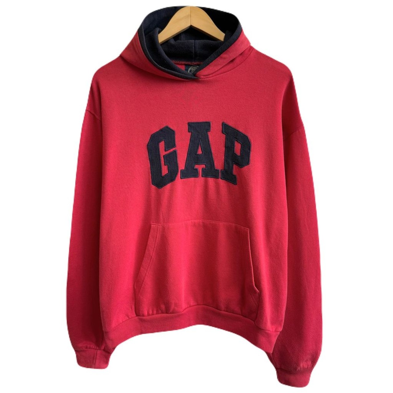OLD GAP ギャップ ロゴワッペン フーディー パーカー ポケット付き 赤×紺 Lサイズ No.H513