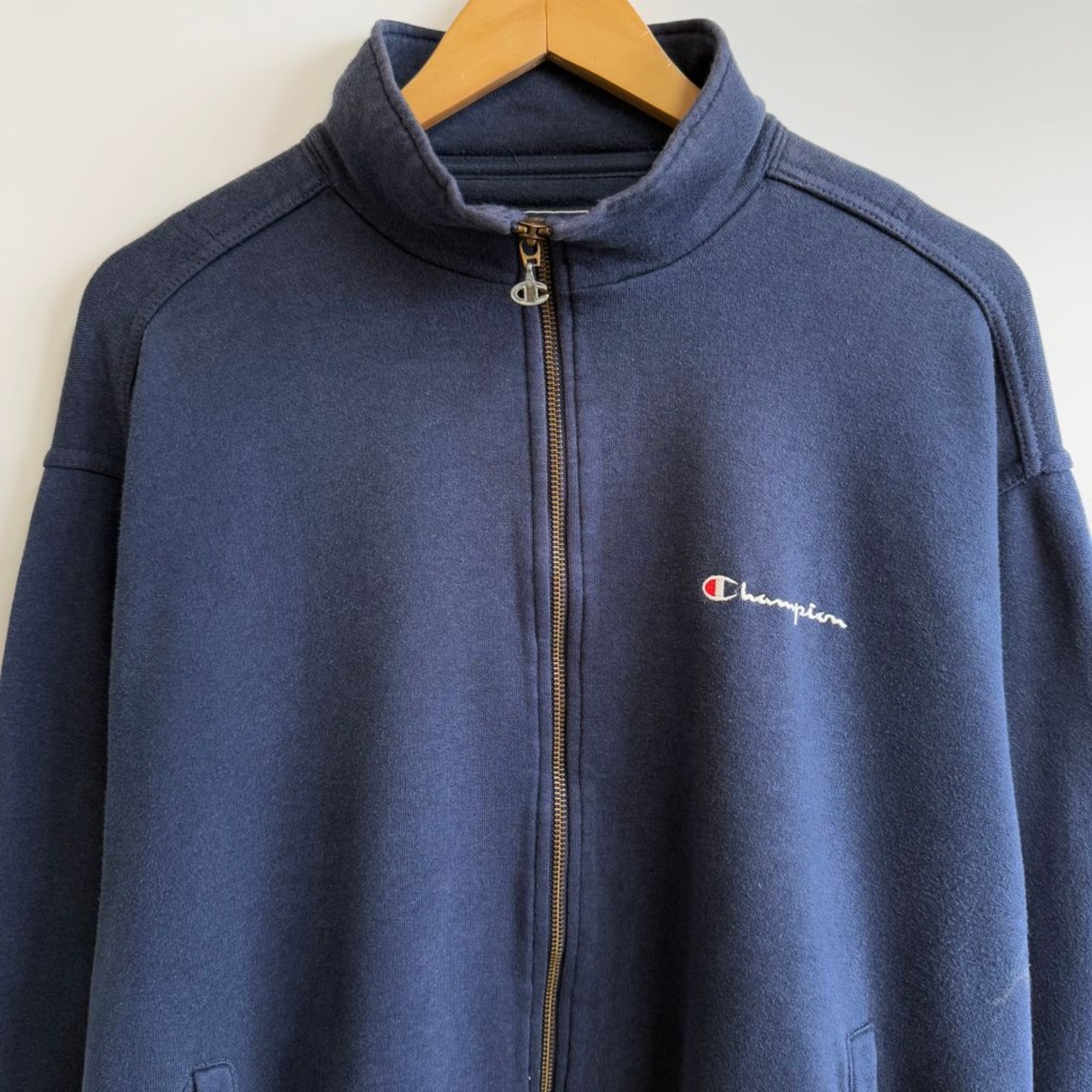 Champion チャンピオン フルジップ スウェットジャケット ワンポイントロゴ 刺繍 ポケット付き 紺 ネイビー Lサイズ No.H516