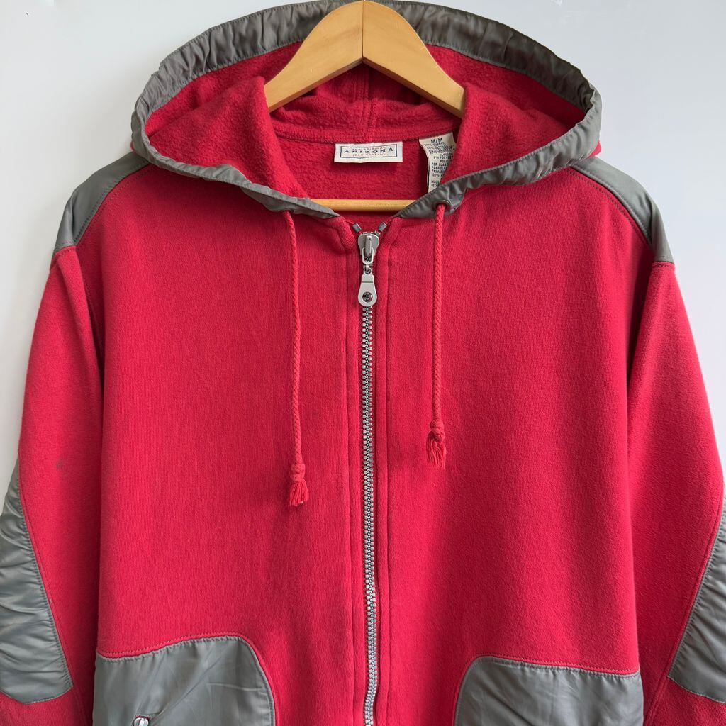 ARIZONA アリゾナ フルジップパーカー 裏起毛 切り替えデザイン 無地 赤×グレー Mサイズ No.H520