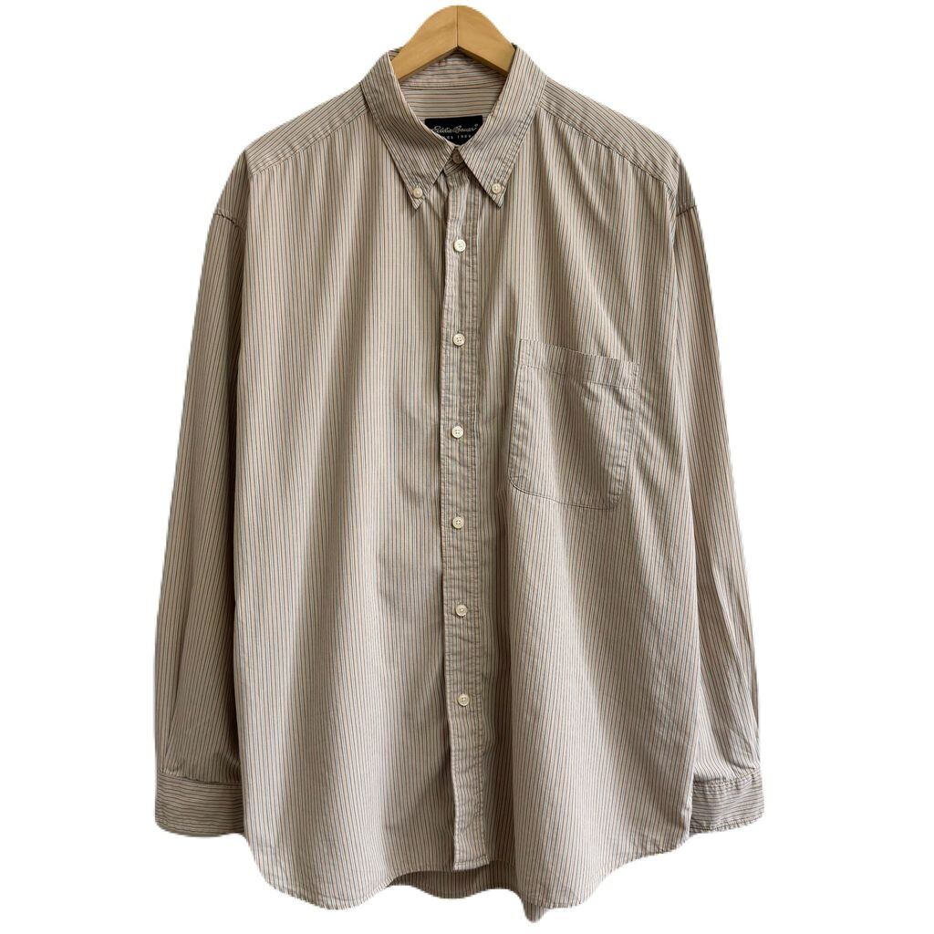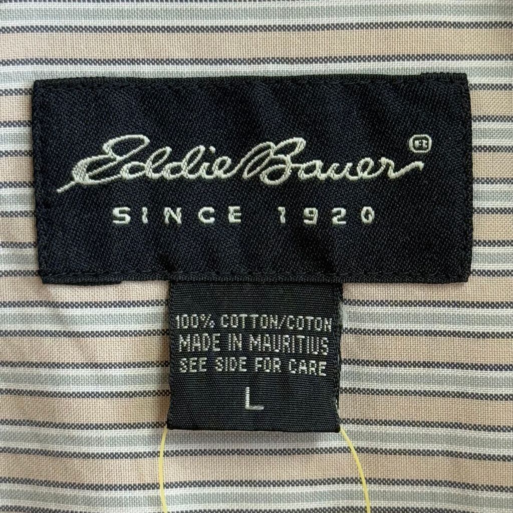 Eddie Bauer エディーバウアー ボタンダウンシャツ コットンシャツ ストライプ ポケット付き 長袖シャツ ベージュ×グレー×白×黒 Lサイズ No.H524
