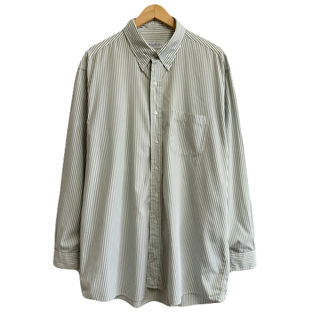 Brooks Brothers ブルックスブラザーズ ボタンダウンシャツ コットンシャツ ストライプ ポケット付き 長袖シャツ 白×オリーブグリーン No.H525