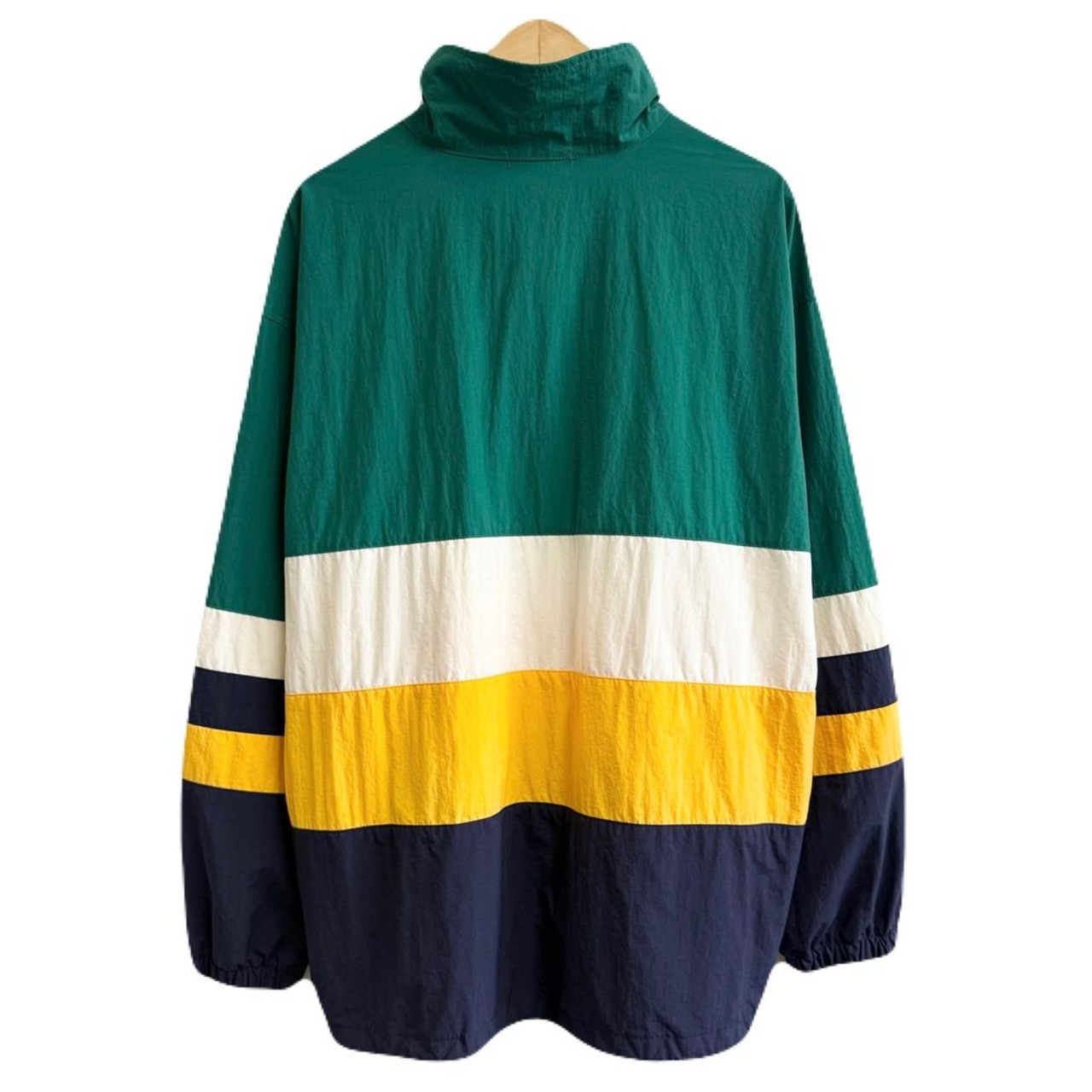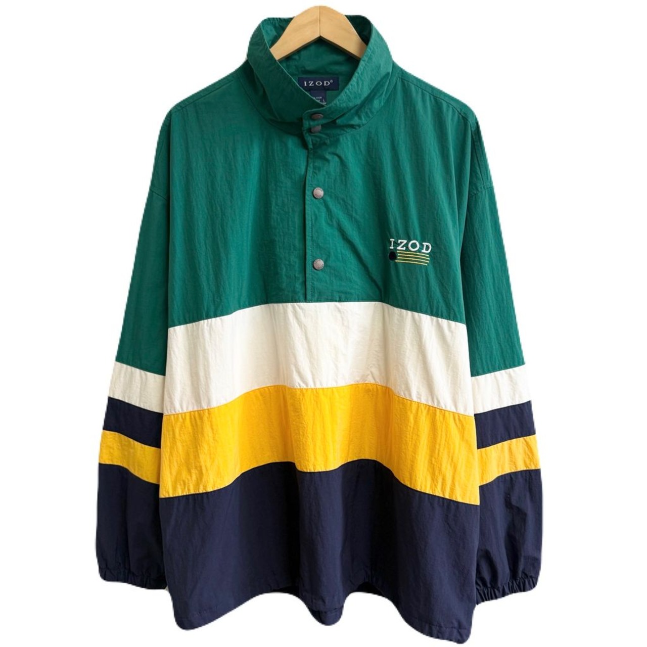 IZOD ナイロンアノラック プルオーバー ハーフボタン ナイロンジャケット ポケット付き 緑×白×黄色×紺 Lサイズ No.H531