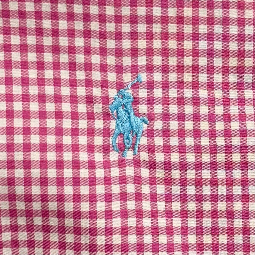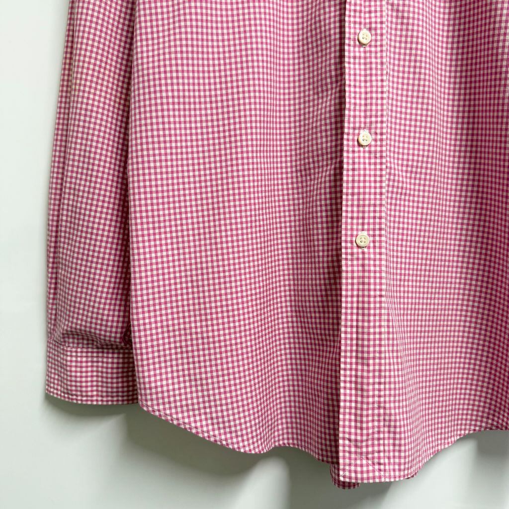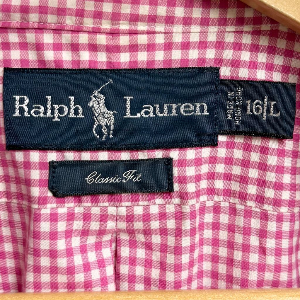 Ralph Lauren ラルフローレン CLASSIC FIT ボタンダウンシャツ コットンシャツ チェック柄 長袖シャツ ギンガムチェック ワンポイントロゴ 刺繍 白×ピンク Lサイズ No.H552
