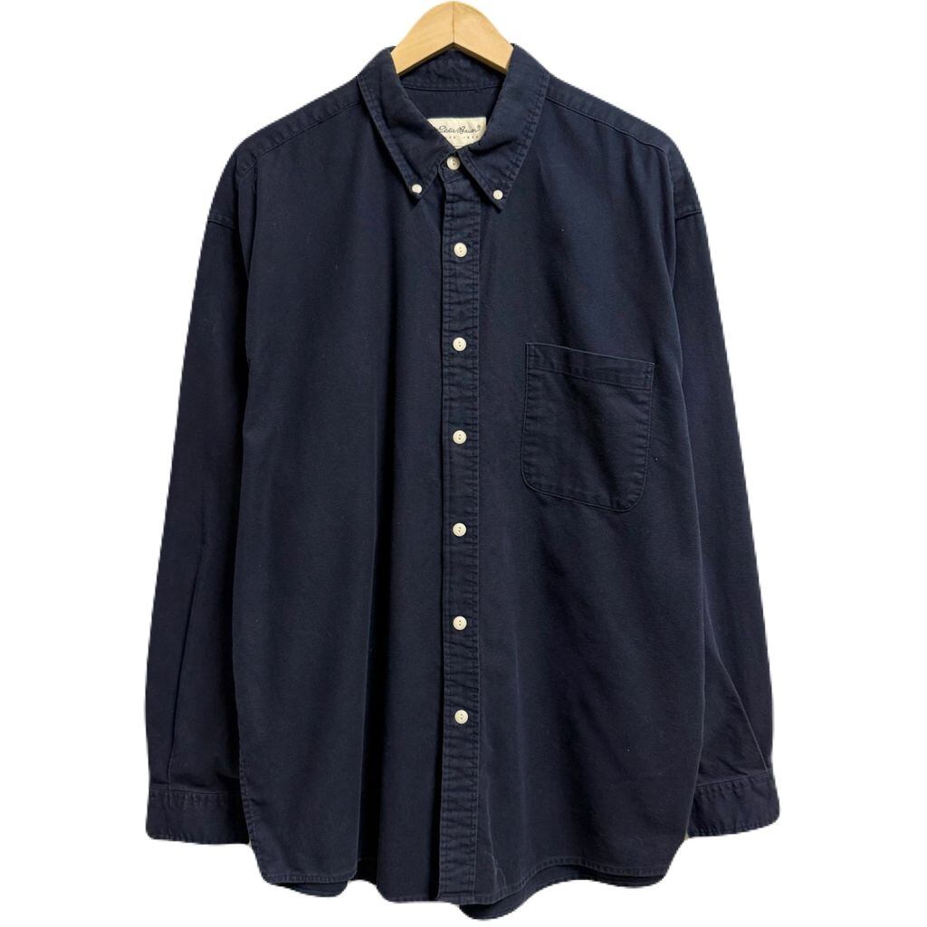 Eddie Bauer エディーバウアー ボタンダウンシャツ コットンシャツ 無地 ポケット付き 長袖シャツ 紺 ネイビー XLサイズ No.H553