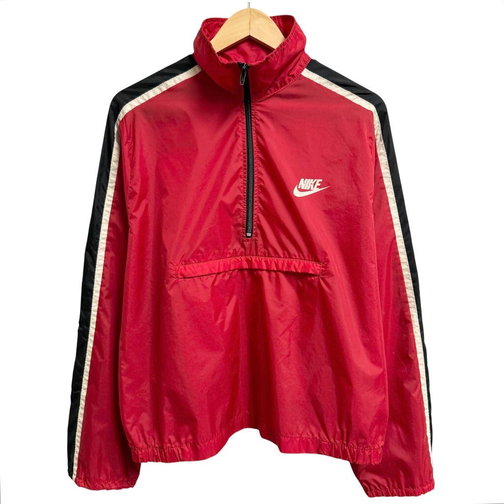 80's NIKE ナイキ ナイロンアノラック ナイロンプルオーバー ハーフジップ ポケット付き 赤×白×黒 Sサイズ No.H554