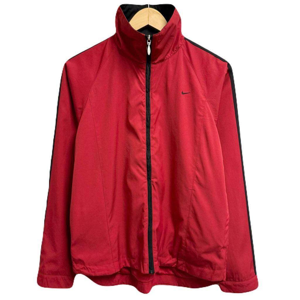NIKE ナイキ トラックジャケット ジャージ ワンポイントロゴ 刺繍 フルジップ ポケット付き 赤×黒 Mサイズ No.H556