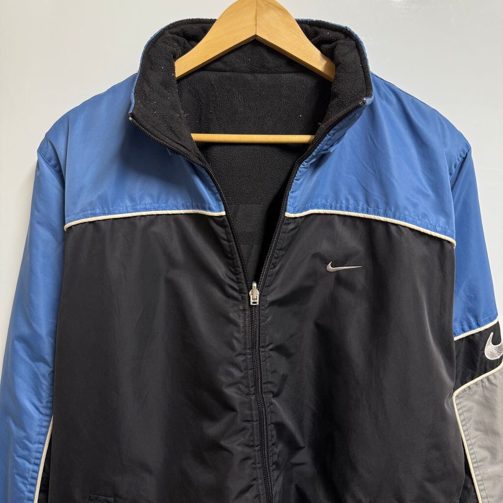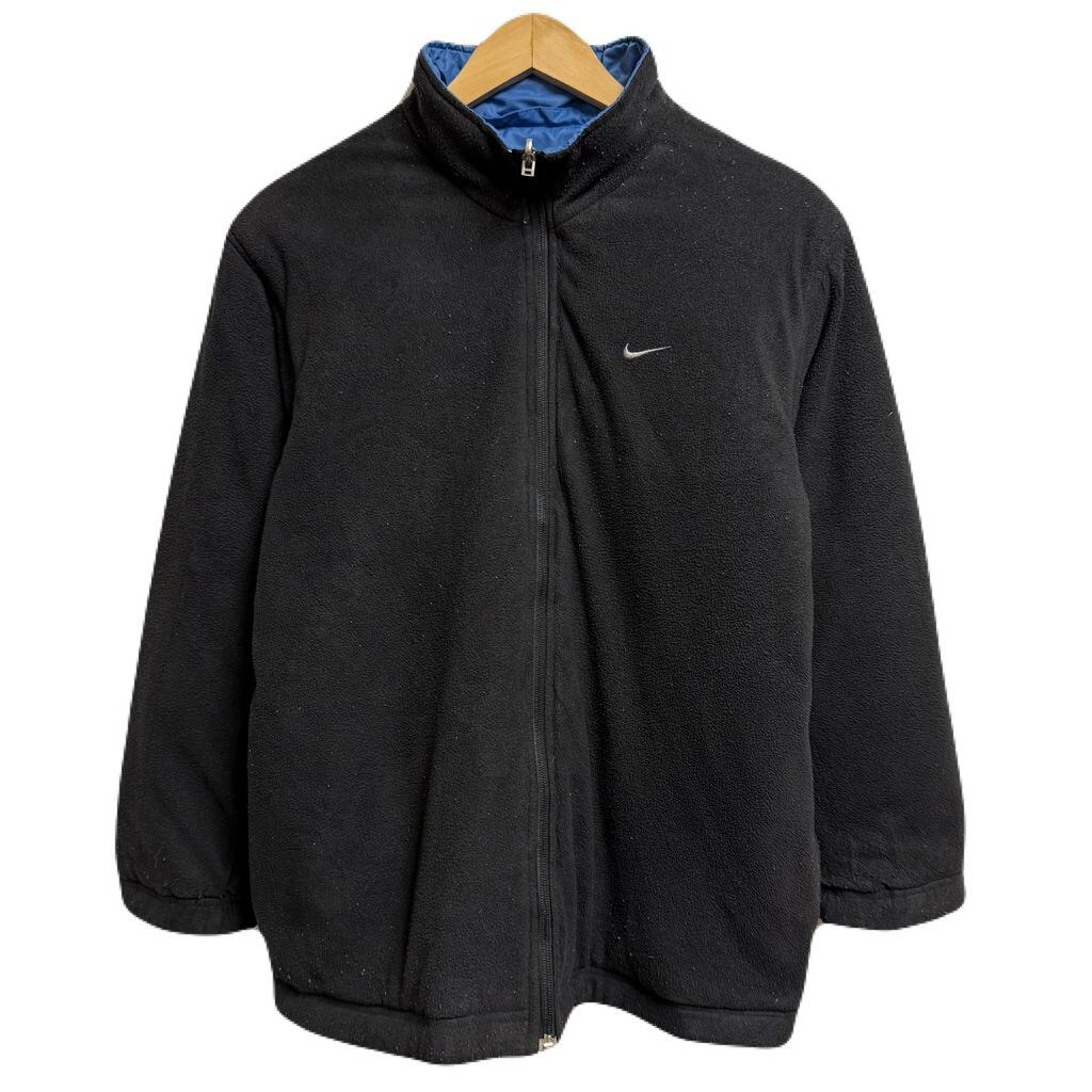 (リバーシブル) NIKE ナイキ ナイロンジャケット×フリースジャケット ロゴ刺繍 フルジップ ポケット付き マルチカラー 青×グレー×黒 Lサイズ No.H557