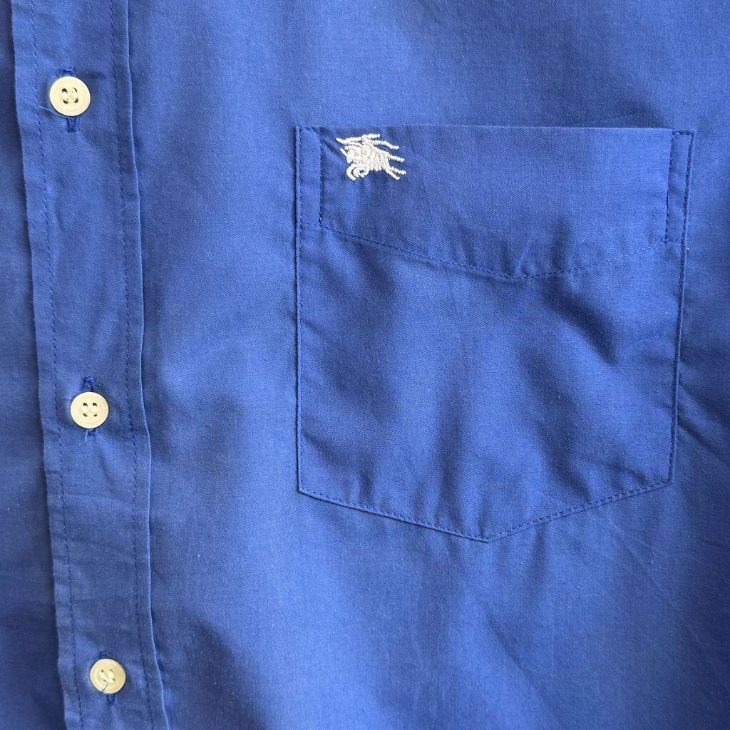 Burberrys バーバリー ボタンダウンシャツ コットンシャツ ポケット付き 長袖シャツ ワンポイントロゴ 刺繍 青 ブルー Mサイズ No.H569