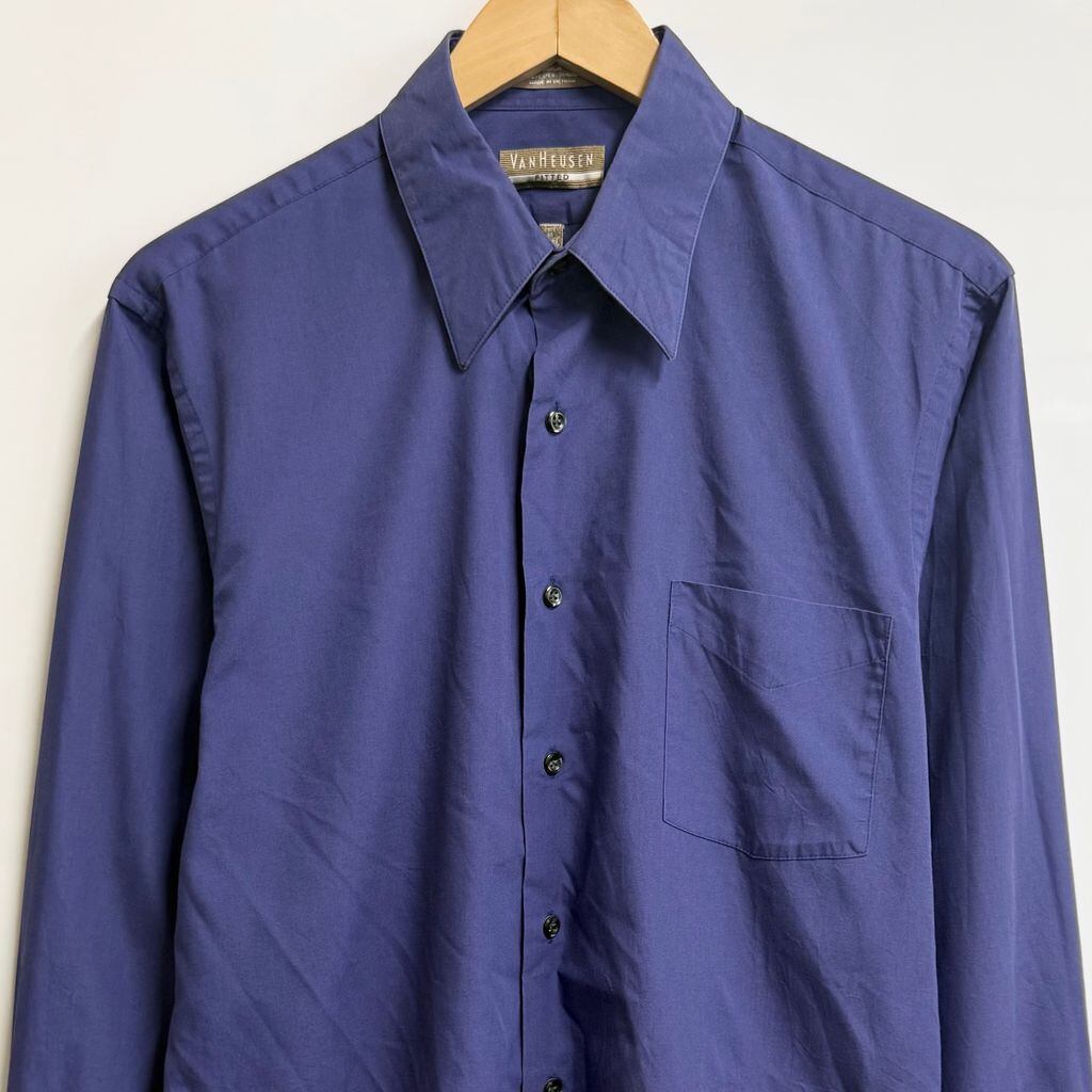 VAN HEUSEN ヴァンヒューゼン 無地 ポケット付き 長袖シャツ 青紫 Lサイズ No.H573