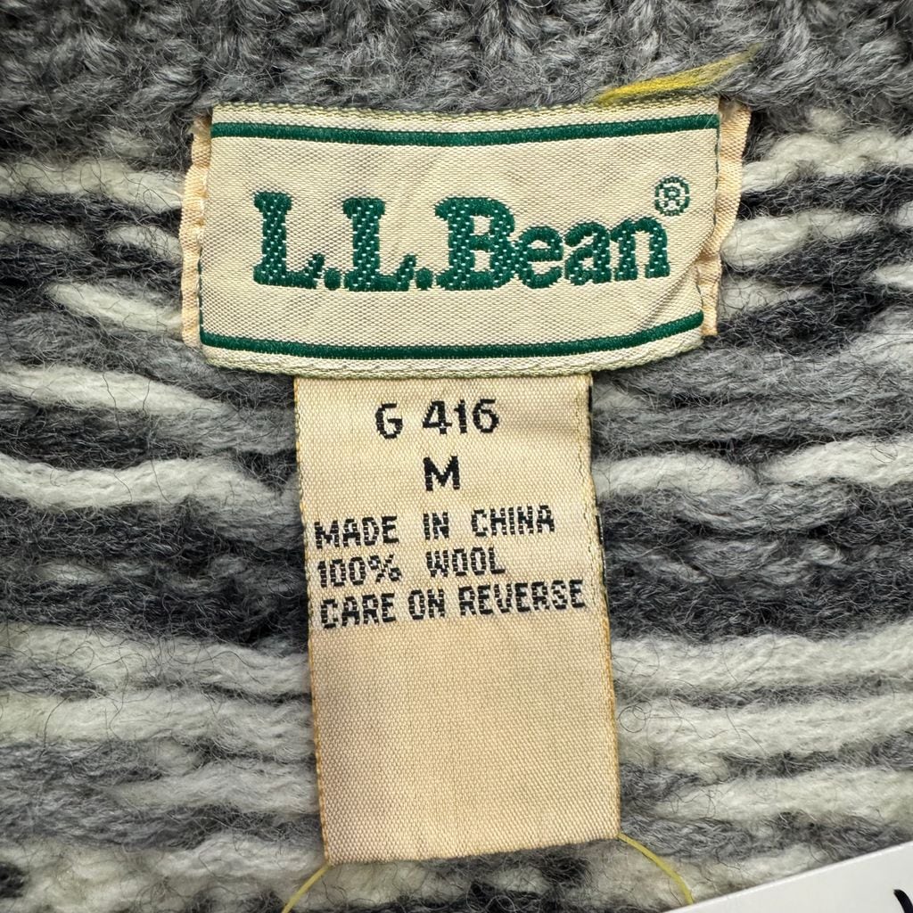 80s L.L.Bean NORDIC WOOL G416 エルエルビーンノルディック ウール セーター グレー×ホワイト Mサイズ No.E792