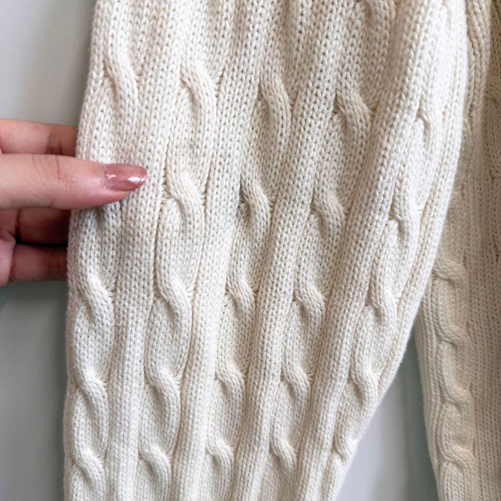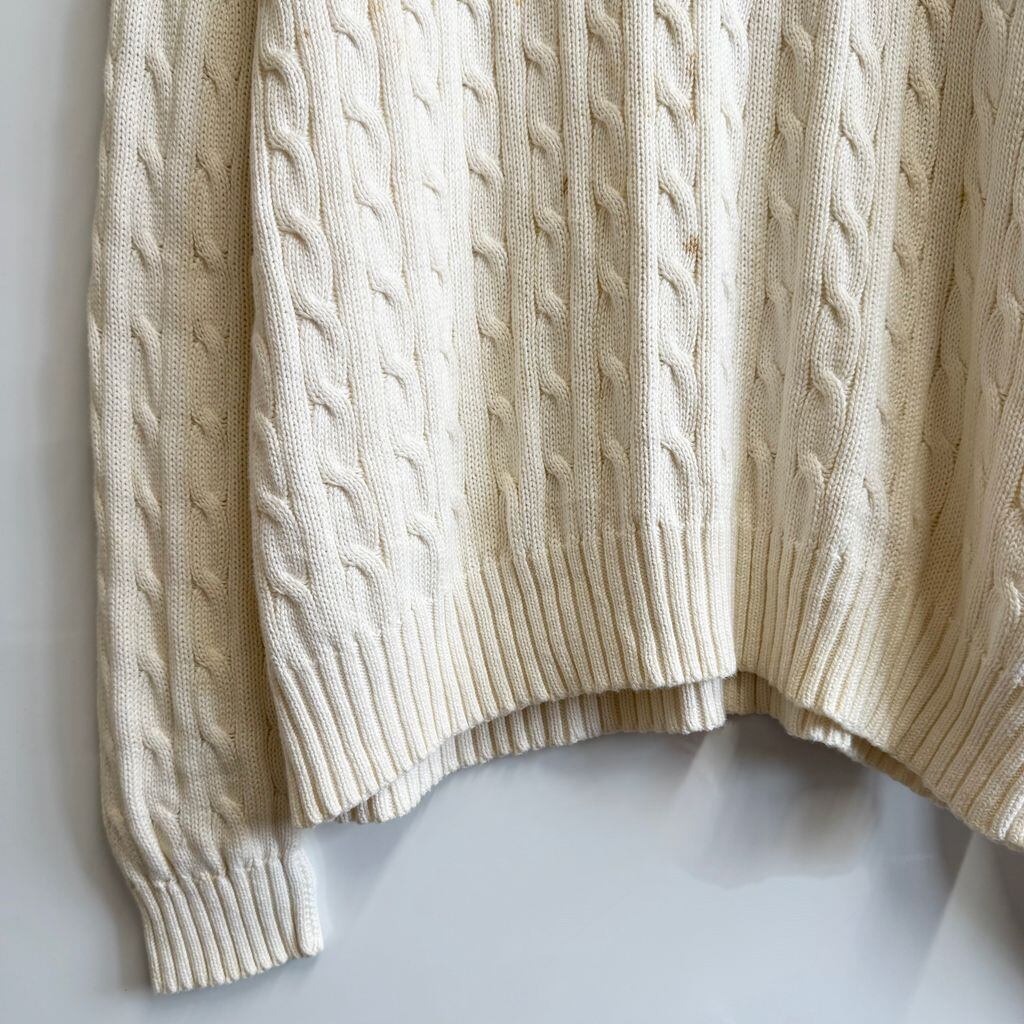 Polo Ralph Lauren ポロ ラルフローレン ケーブルニット セーター Vネック ワンポイントロゴ 刺繍 白 XXLサイズ No.H587