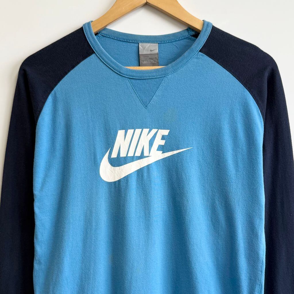 NIKE ナイキ ラグランスリーブ ロンT ロゴプリント 水色×紺 XLサイズ No.H588