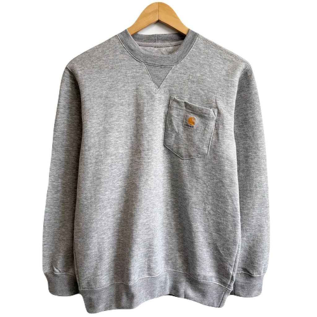 Carhartt カーハート ORIGINAL FIT トレーナー スウェット 裏起毛 ロゴプリント 胸ポケット付き グレー Sサイズ No.H590